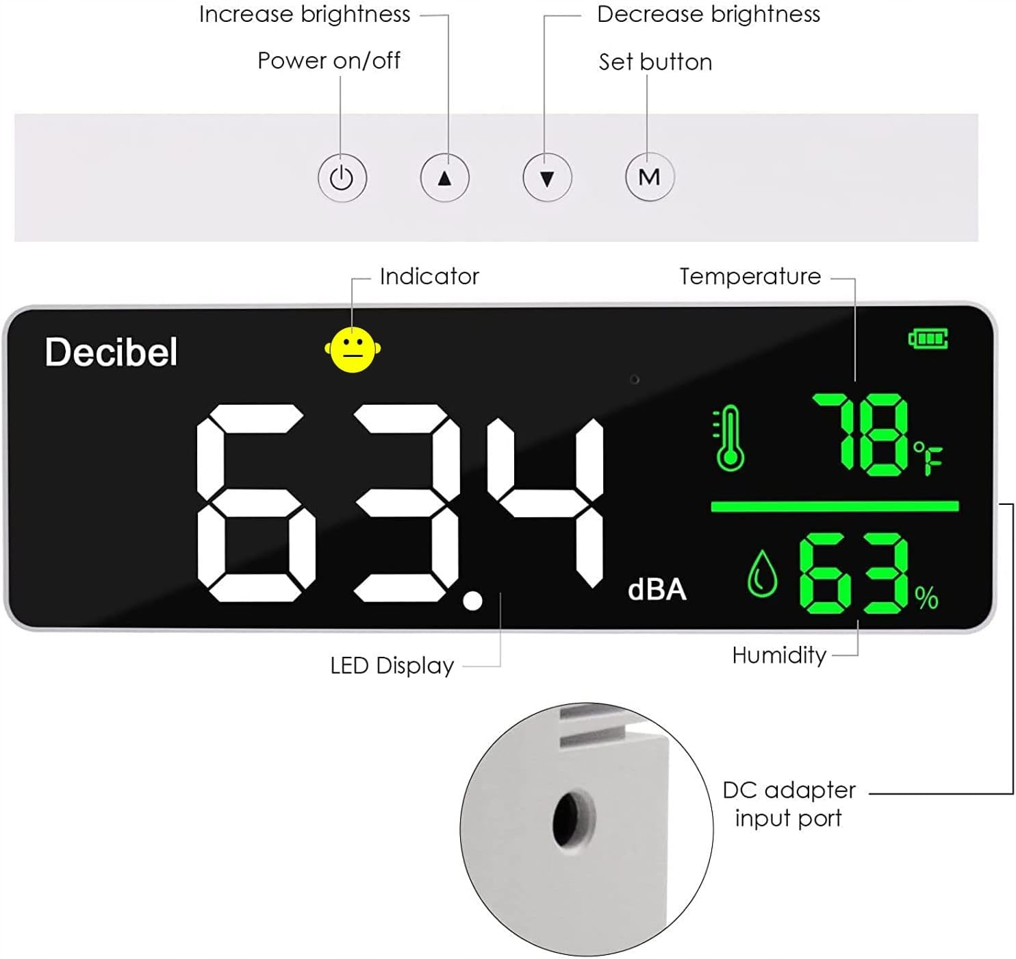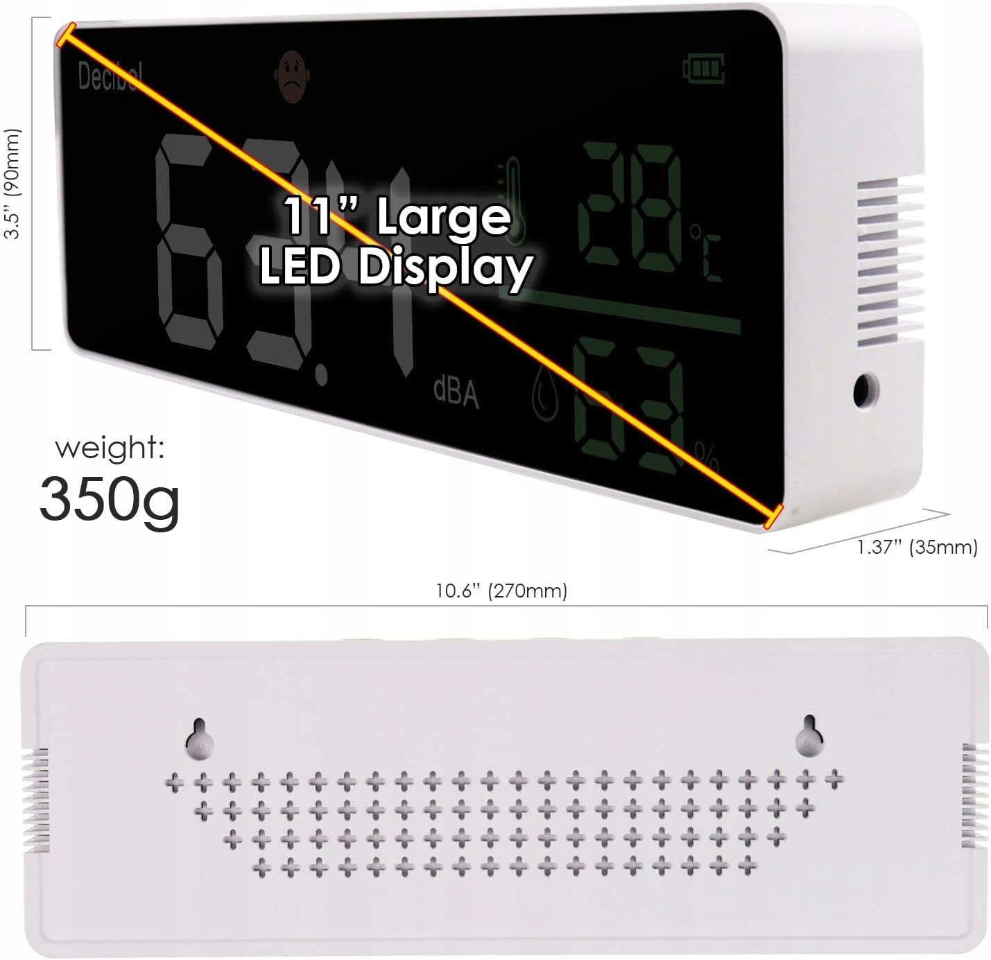 ⭐Измеритель шума со светодиодным дисплеем 11 дюймов DANOPLUS дБ + температура и влажность со значком сигнализации