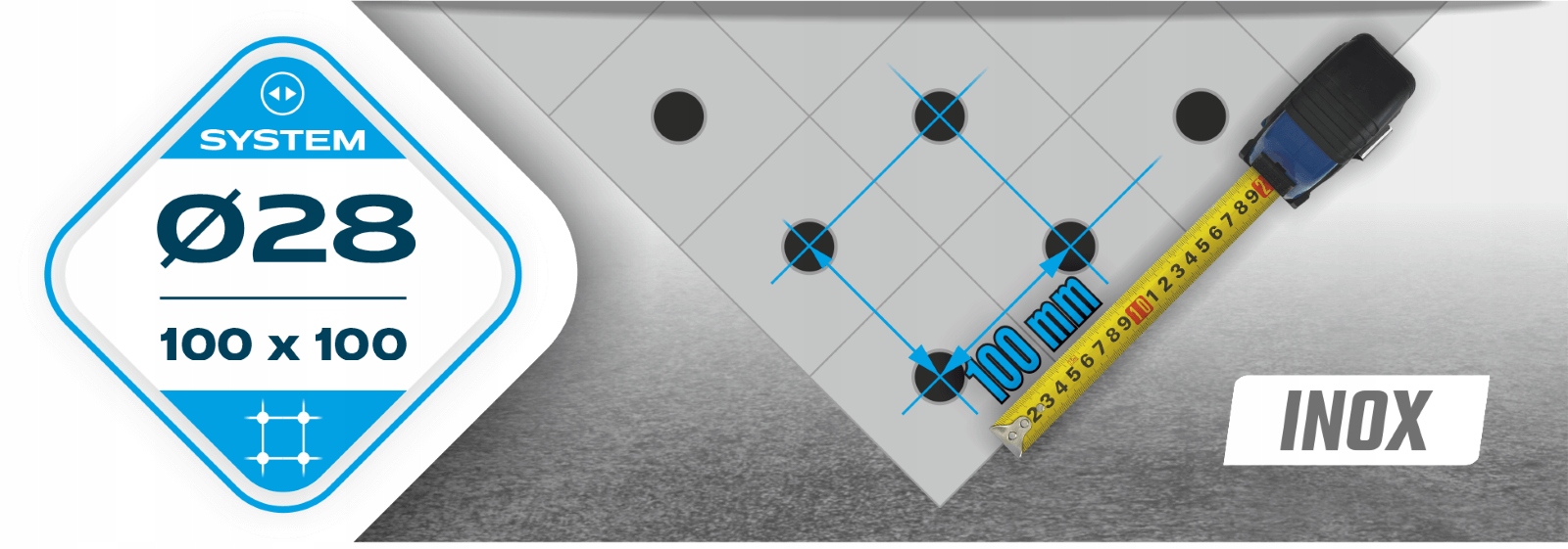 - Fi 28 мм в диагональной сети - это система, которую вы также будете использовать для более крупных, более тяжелых конструкций, одна с большими возможностями прикрепления инструментов;