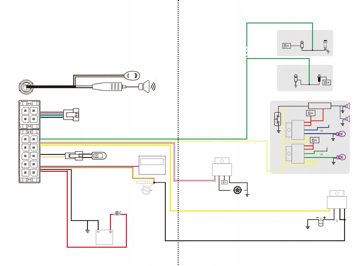 ➡ Функция мониторинга голоса и двусторонней связи Разговор с водителем. Просто подключите проводку, прикрепленную к набору к нужному месту. Также можно найти потерянный автомобиль, отправив правильную команду - затем мы запускаем рог и свет в машине