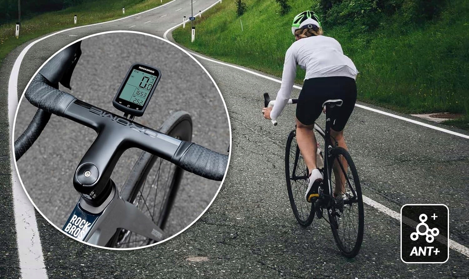 Многофункциональный беспроводной велосипедный счетчик из Rockbros M1 . Конфигурация с приложением xoss температура окружающей среды, средняя скорость, время, наклон и т. Д. После подключения дополнительных аксессуаров ant+ вы также сможете зарегистрировать термины, частоту сердечных сокращений, мощность или скорость (с колеса, а не с GPS).