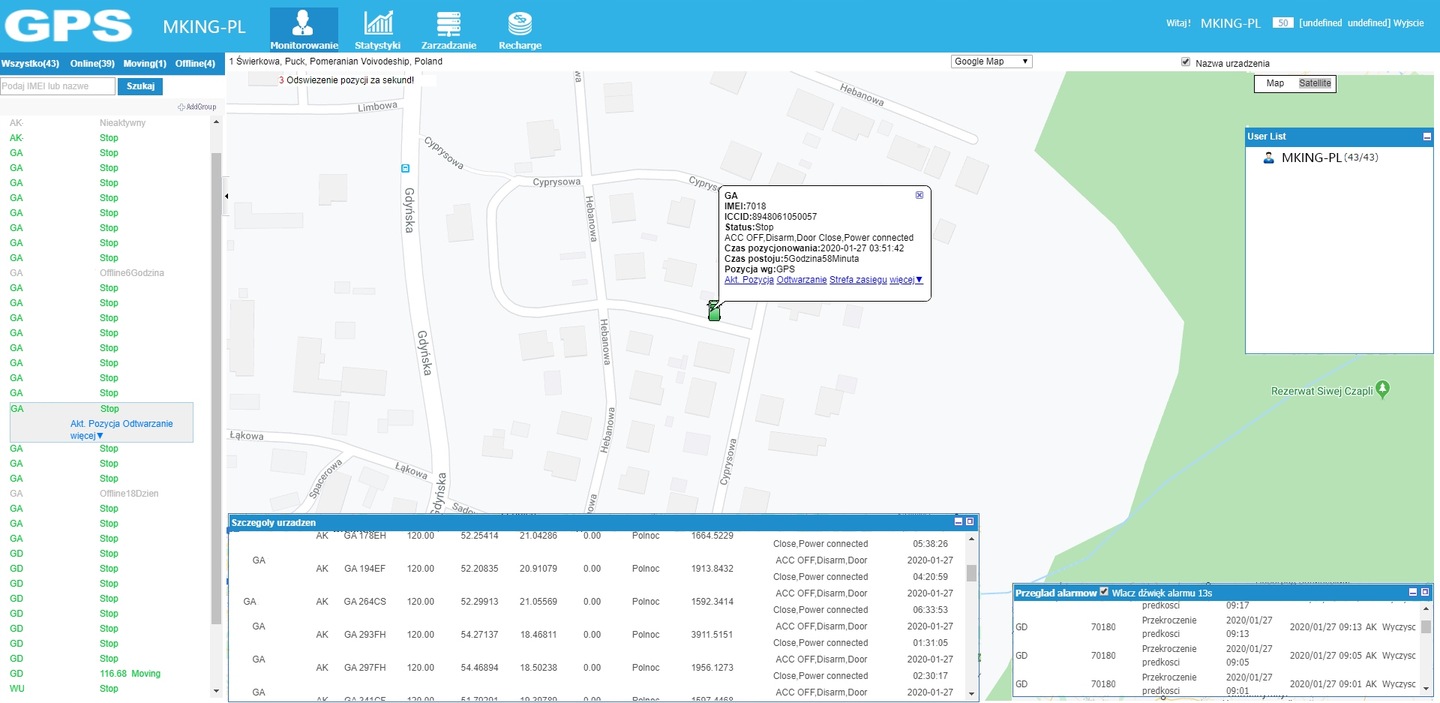 Программное обеспечение на сайте отслеживания на польском языке. Вы можете загрузить приложения для Android/iOS, чтобы проверить свое текущее местоположение и историю путешествий.