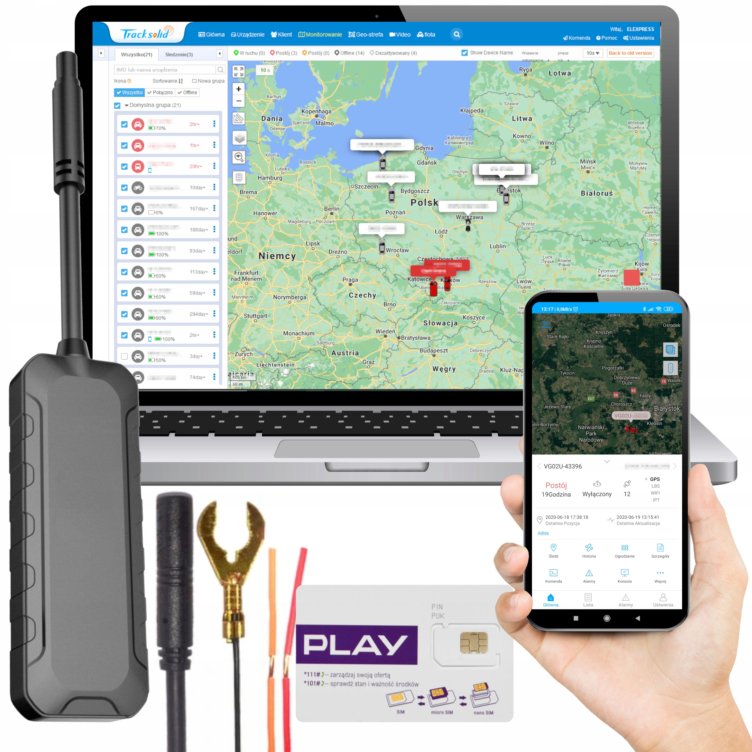 - Конфигурация устройства включена в цене Польский онлайн-сервис отслеживания Tracksolid.