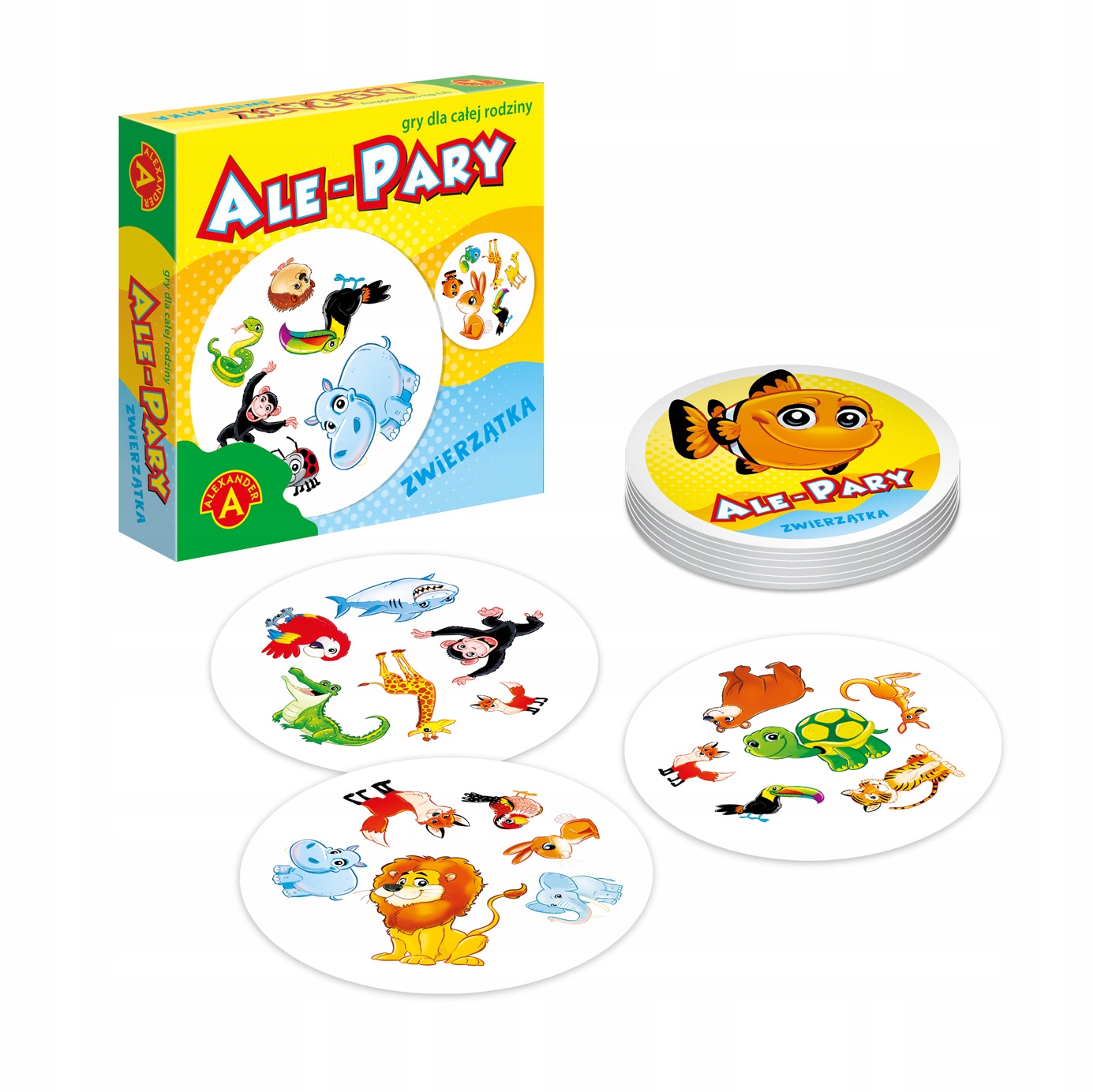 В пакете вы найдете набор из 31 карт с 6 изображениями, изображающими животных. У любых двух карт всегда есть одна общая картина, но не слишком просты, эти картинки часто имеют разные размеры.