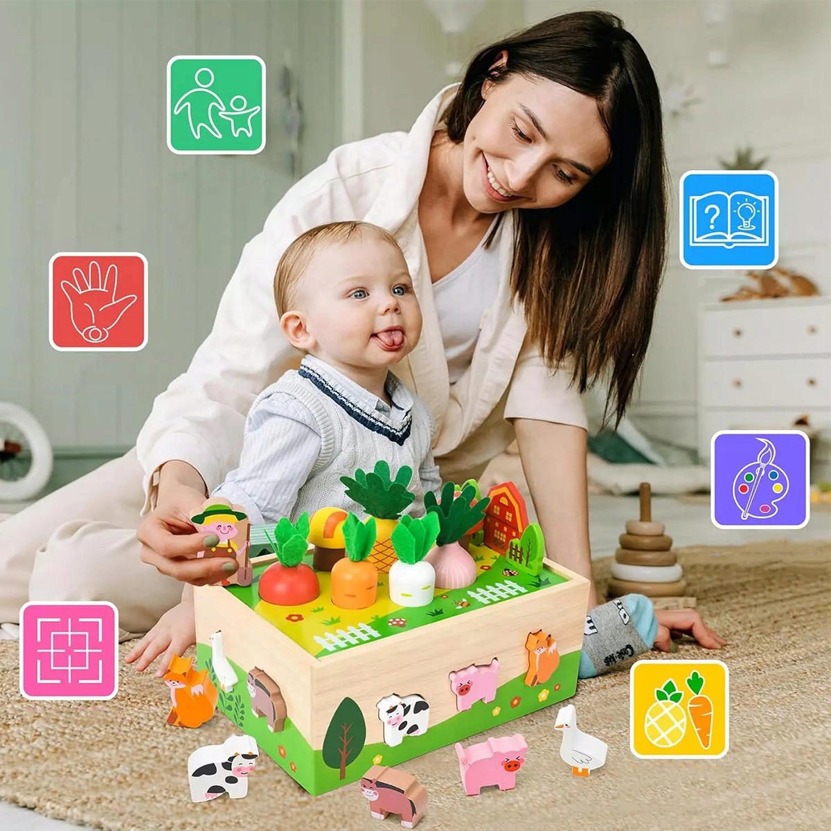 Эта развивающая игрушка позволяет малышам развивать свои познавательные и творческие способности, выращивая овощи и расставляя животных. Это стимулирует их мышление и помогает развивать мелкую моторику и зрительно-моторную координацию. Это отличная игрушка для детей.