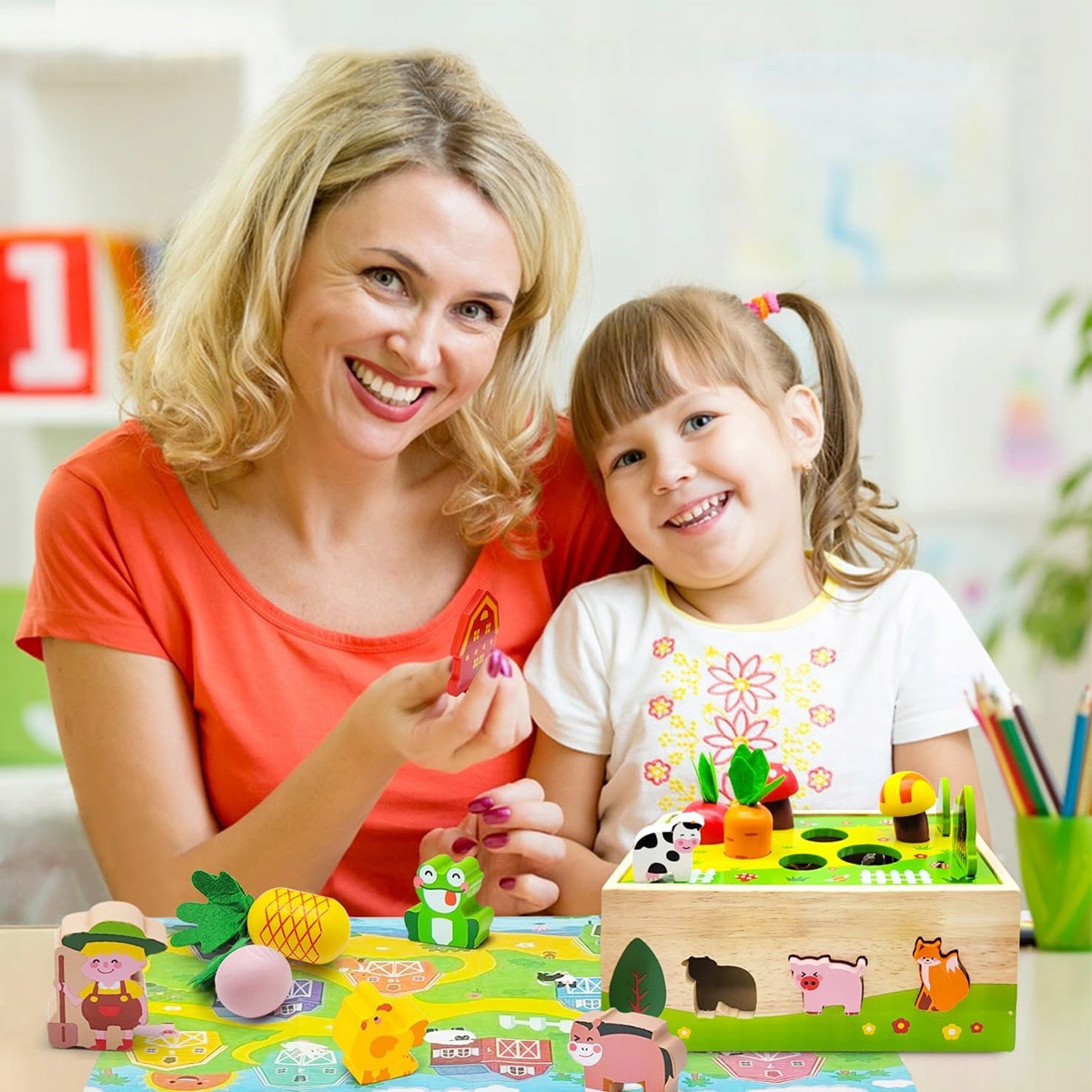 Когда малышам надоест играть, все овощи, животные и различные аксессуары можно поместить на деревянную основу, которую легко хранить и которая помогает детям выработать хорошую привычку хранить вещи самостоятельно. Деревянные игрушки включают в себя множество интерактивных игр, которые развлекут вашего ребенка и помогут укрепить связь с родителями.