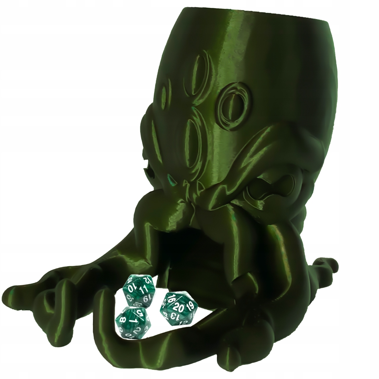 Эта башня для игральных костей представляет собой уникальное изображение Древнего Ктулху, иконы литературы ужасов.