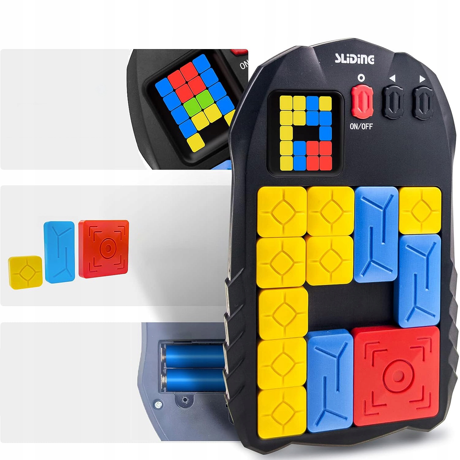 🔶🔷 Легкость в использовании, нажимайте и удерживайте кнопку включения/выключения, чтобы включить ее. Вы можете нажать ◀ или ▶, чтобы выбрать любой уровень. Поместите блоки в соответствии с уровнями, показанными на светодиодном экране. Нажмите кнопку O, чтобы запустить игру. Затем нажмите кнопку. После успешной задачи снова нажмите кнопку O, и следующий уровень отобразится на экране. Консоль требует 2 батареи AAA (не в наборе).