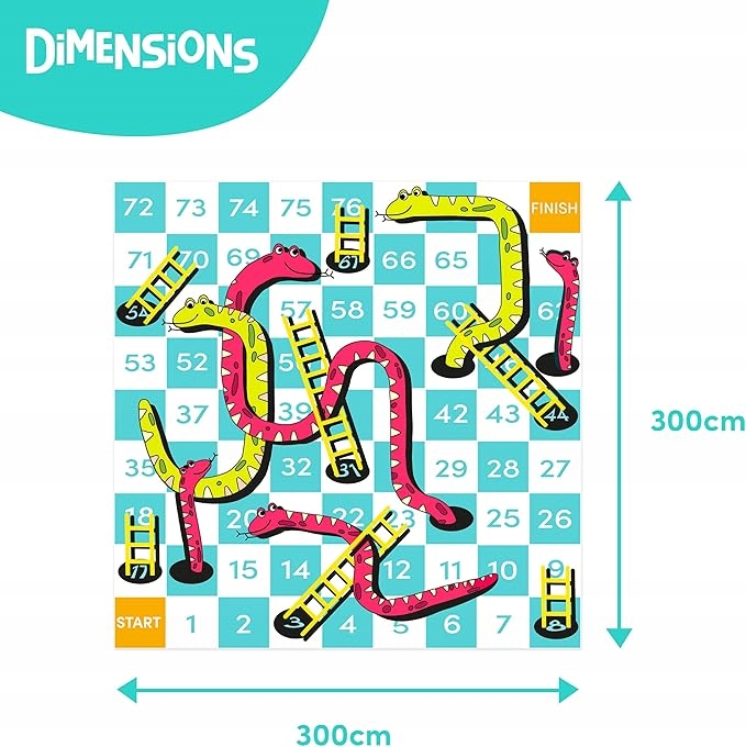 Вас ждет огромное веселье: дайте волю бесконечному азарту в нашей игре «Змеи и гигантская лестница»! Этот колоссальный игровой коврик размером 3 х 3 м превратит ваш сад в захватывающую игровую площадку, сделав его идеальным центром для встреч на свежем воздухе, вечеринок по случаю дня рождения и семейных выходных. Погрузитесь в мир, где каждый шаг — приключение, а воздух наполняется смехом!