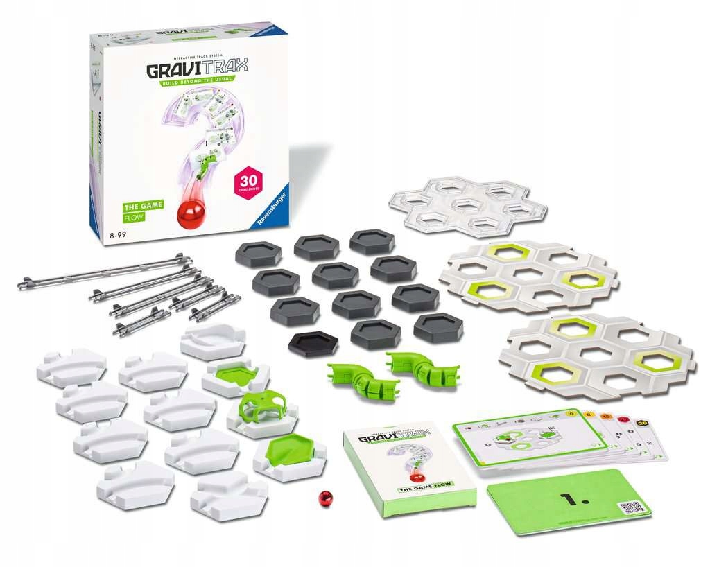 Используйте свои пространственные и логические навыки, решая захватывающие задачи в «GraviTrax: Flow» — развлечение как для профессионалов, так и для новичков! Сможете ли вы, зная только стартовую и финишную позиции, построить соединительную трассу со всеми указанными элементами? Выберите одну из тридцати карточек с заданием. Развлекайтесь и развивайте свои навыки, решая все более сложные головоломки! GraviTrax The Game бросает вызов детскому творчеству и воображению. Использует концепции STEM, развивая критическое мышление и навыки решения проблем.
