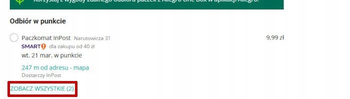 Вы можете забрать его лично в Варшаве возле метро «Урсынув». . Для этого в форме доставки найдите «Самовывоз на точке» и нажмите «Просмотреть все»