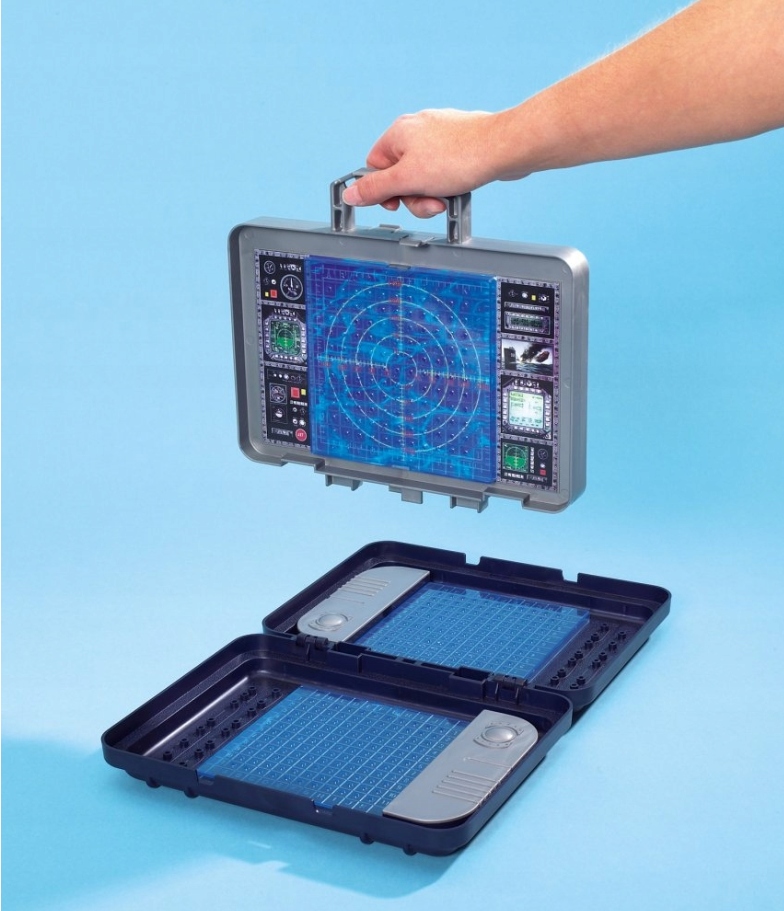 Две части чемодана разделены вертикальной стенкой, напоминающей радар, на которой отмечены сбитые и затонувшие корабли. Стена не позволяет игрокам видеть расположение вражеских юнитов. В футляре также есть отделения для игровых фишек.
