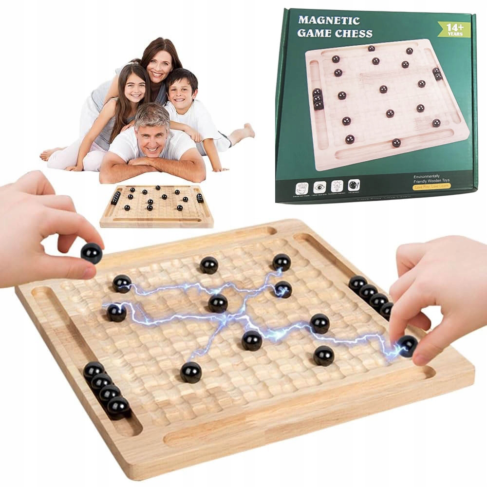 ♟-gra проста, правило, что они не могут привлечь другие магнитные элементы. Когда они сталкиваются, вам нужно забрать комбинированные элементы. Игрок, который успешно помещает все магнитные элементы на шахматной доске, выигрывает.
