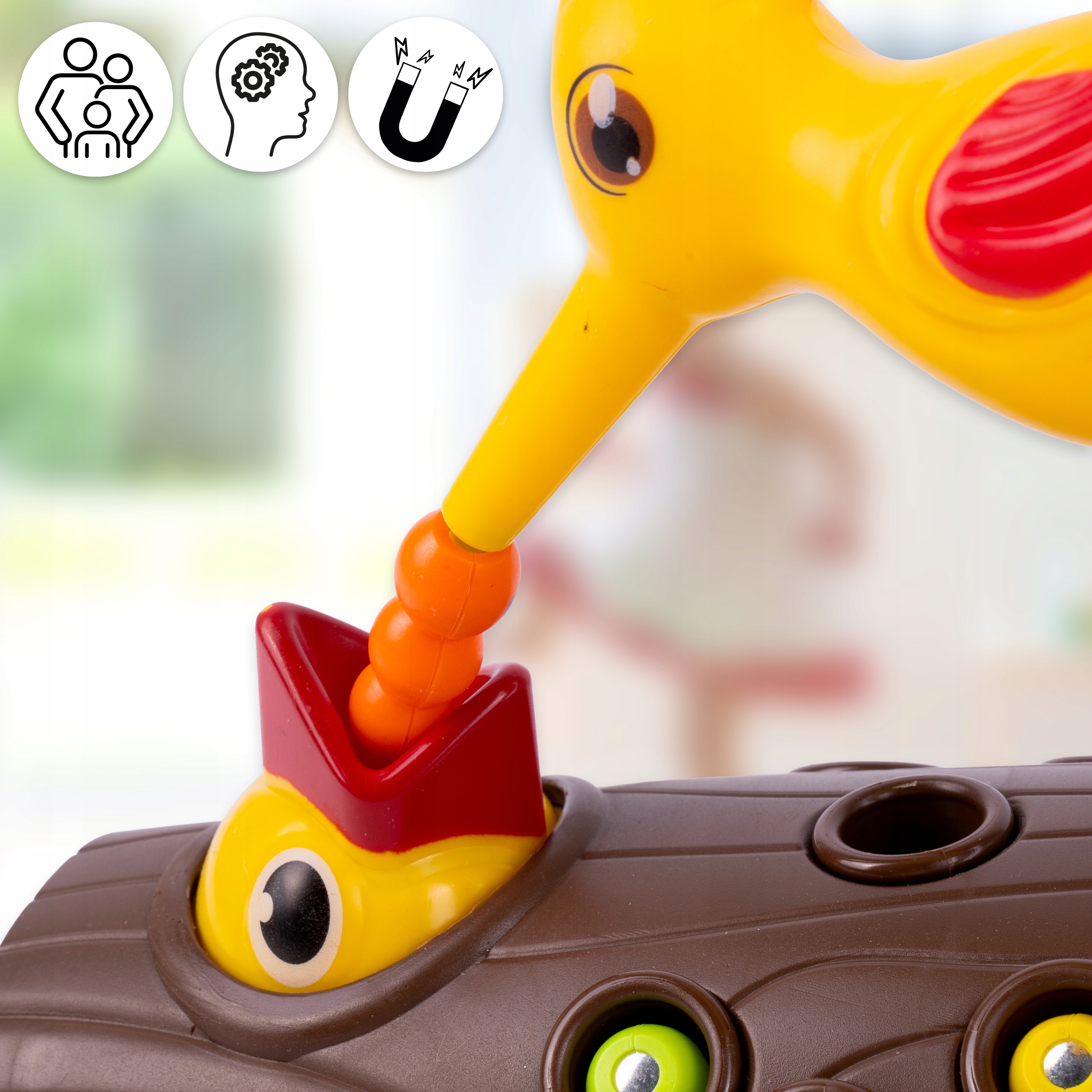 , перемещая магнитные черви, дети учатся не только , чтобы распознать цвета и count b>, но и узнают о поведении птицы b> это . Однако это еще не все! Используя свою ловкость, у детей прекрасно развивается точность движения , что имеет решающее значение для их моторного развития.