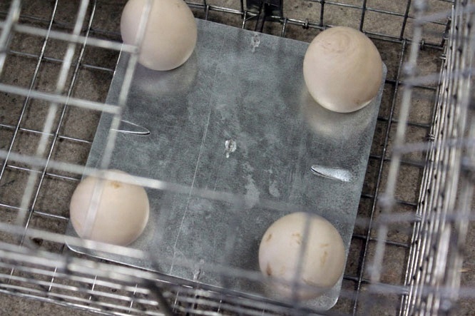 Только в наших ловушках есть специальные места, куда можно положить яйца – куриное яйцо – лучший природный аттрактант для куниц, выдр, лисиц и енотов. У нас на спусковой пластине таких мест 4 - это увеличивает вероятность перемещения спускового механизма до 400%.