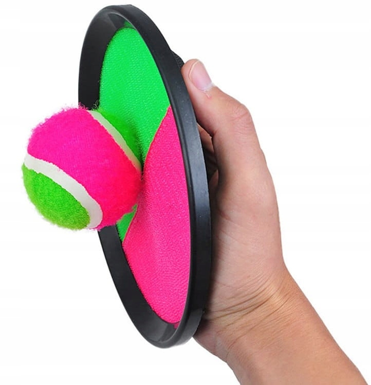 Игра заключается в том, чтобы бросать мяч, а другой человек ловит его на своей тарелке, покрытой липучкой.