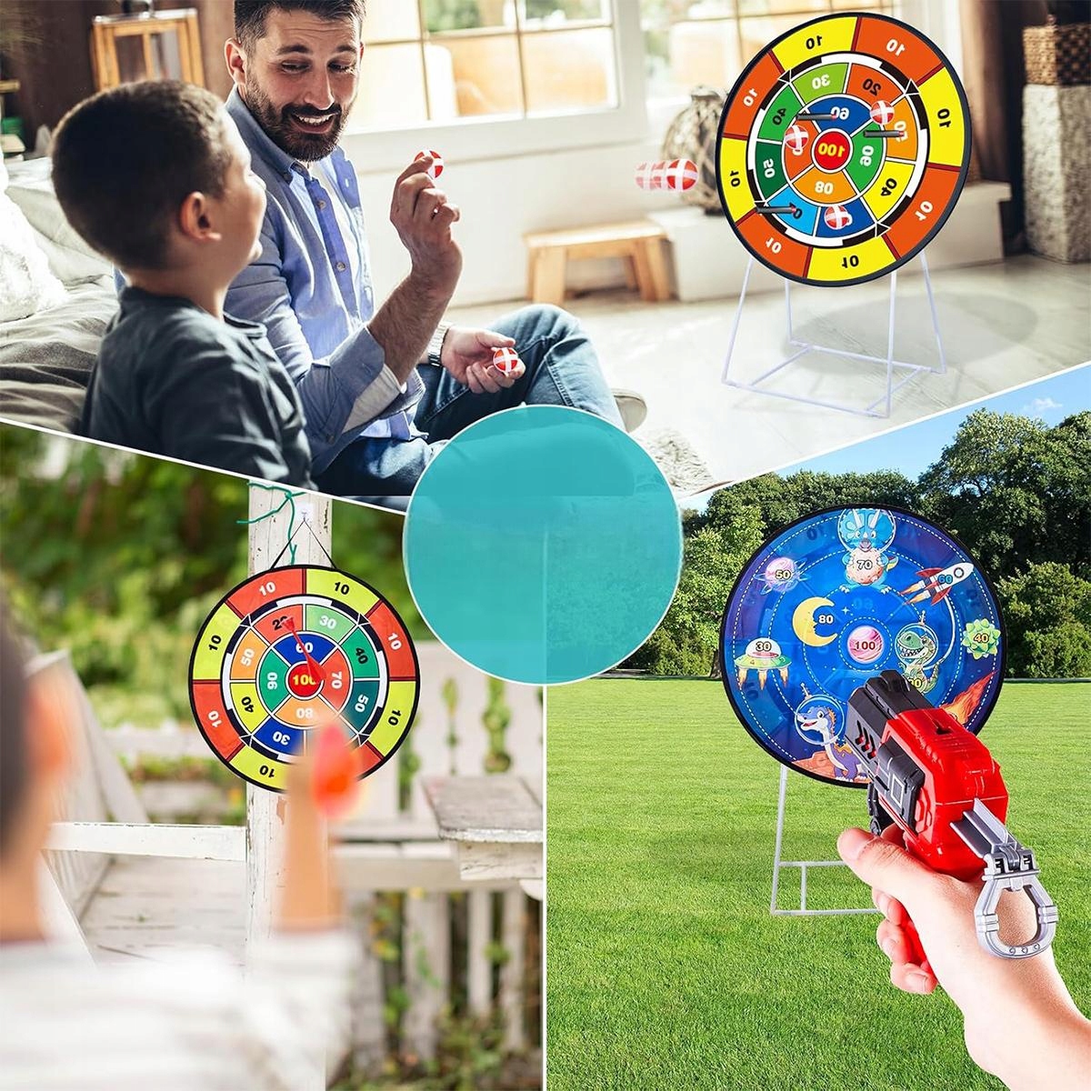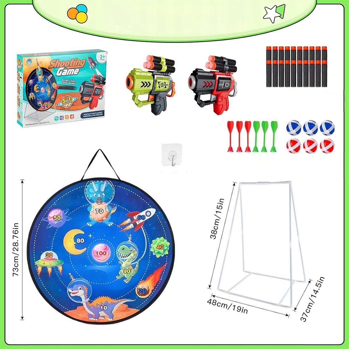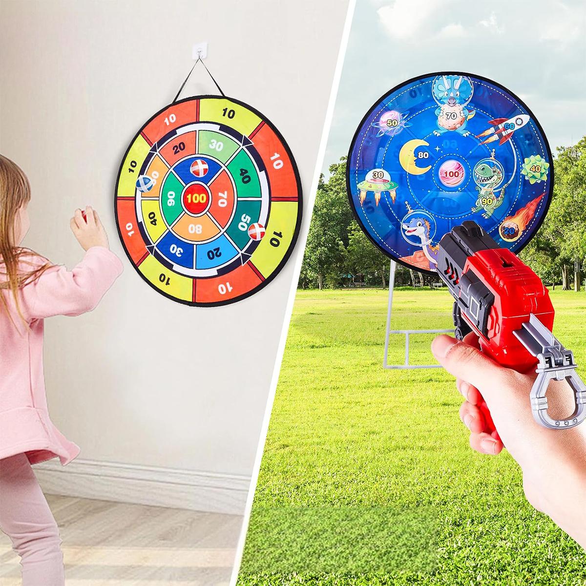 ⭐⭐Двусторонняя доска для дартса «3-в-1» для детей, набор стоячих и подвесных дартс диаметром 29 дюймов с 2 игрушечными пистолетами, сад, карнавальная вечеринка, развлечения дома и на свежем воздухе для мальчиков и девочек в возрасте 3, 4, 5, 6, 7, 8+ лет. ⭐⭐