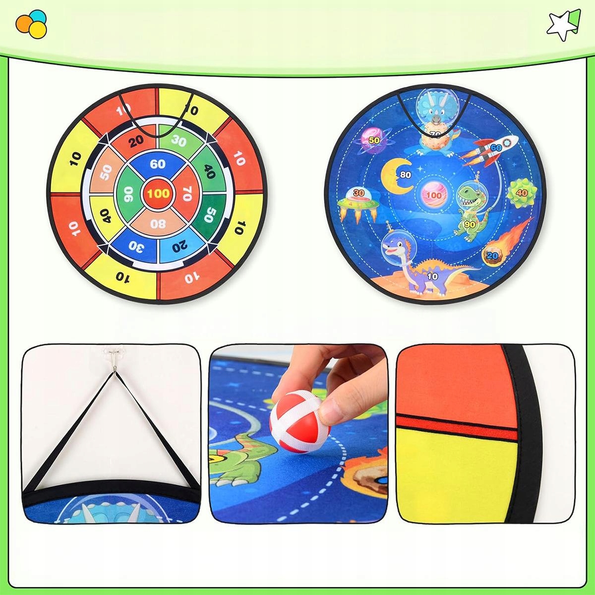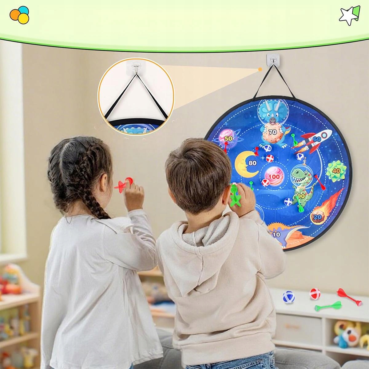 Двусторонний дартс размером 29 дюймов (73 см) предлагает две уникальные игры в одном наборе. В комплект входит прочная подставка для игры на полу и крючки для настенного крепления для классического использования, что делает его идеальным для игр в помещении или на улице. Дети могут развлечься где угодно!