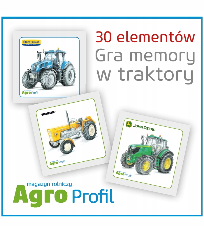 Игра на память (паритет) - содержит 30 карточек (15 пар). Игра на память с тракторами — 15 оригинальных, нарисованных от руки рисунков с изображением тракторов — каждая пара, по одной модели от одной компании! Формат: квадрат с ребром 6 см.