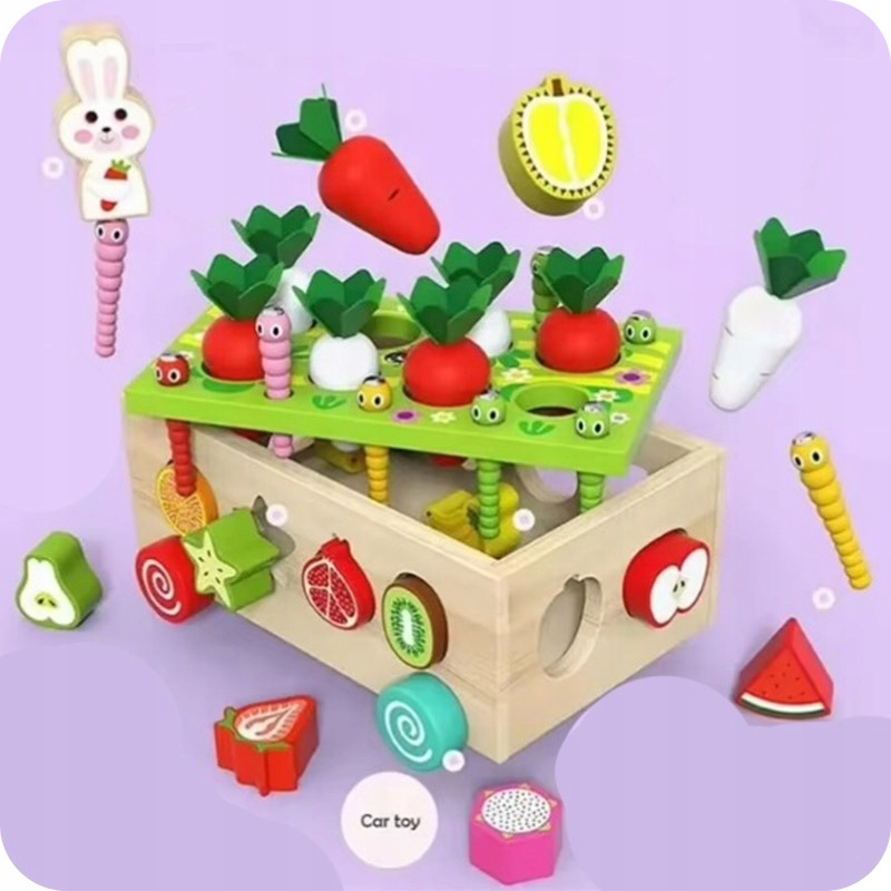 Откройте для себя уникальную обучающую игрушку, которая отправит вашего ребенка в путешествие в увлекательный мир садоводства и науки! Развивающий кубик «Морковный сад» — это больше, чем обычный сортер — это комплексный набор, который способствует открытиям, развитию ручных навыков и логического мышления путем игры с различными элементами. Ребенок может сыграть роль маленького садовника, ухаживающего за морковкой и узнавающего фрукты и овощи.