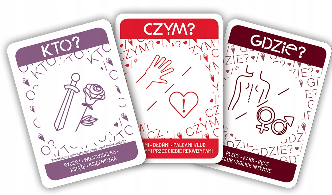 О ДА! ФИОЛЕТОВЫЙ состоит из 3 колод, из каждой из которых вы берете по одной карте. Их комбинация создает сценарий ласки, который вы реализуете на следующем шаге: