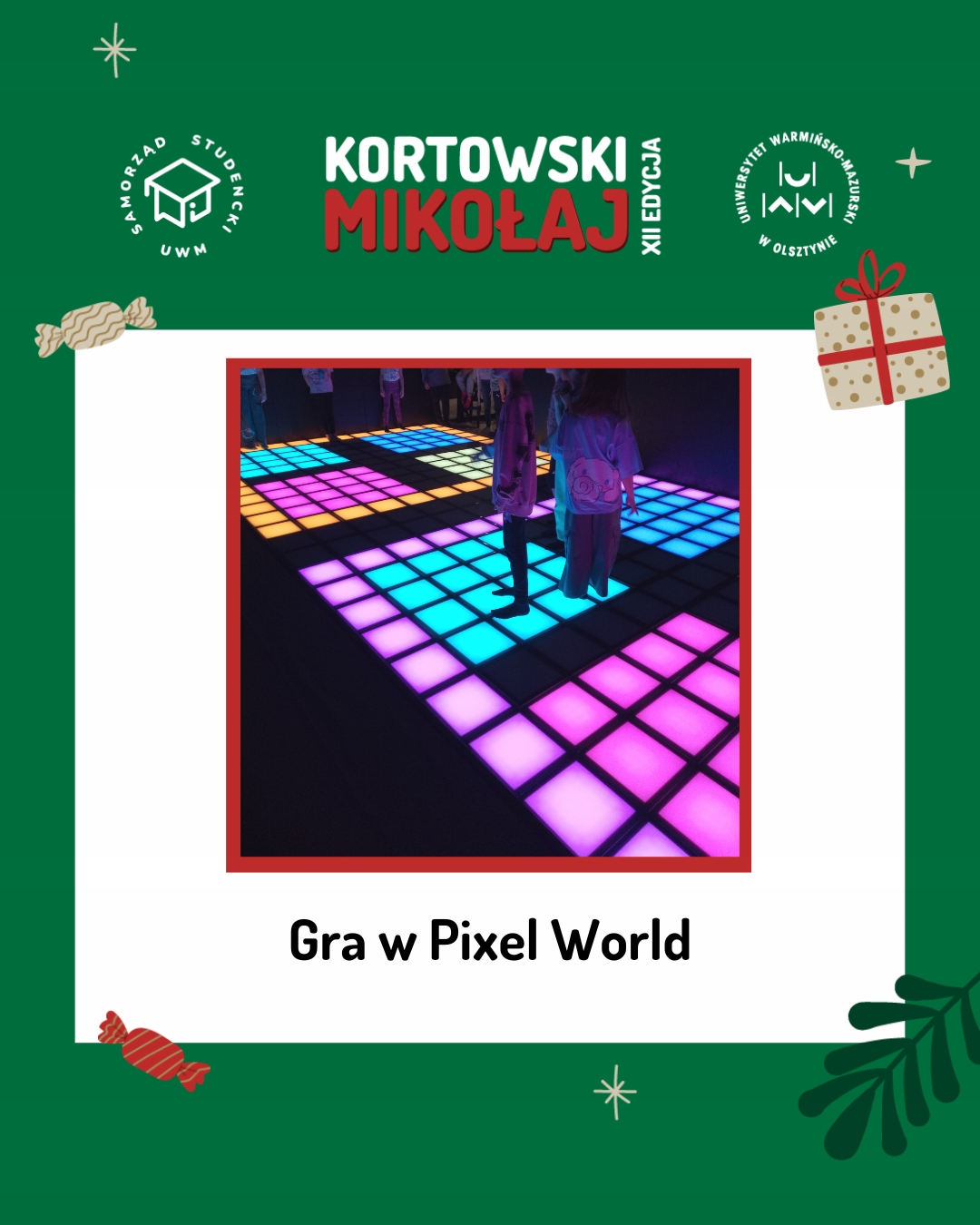 Приглашаем вас сделать ставку на увлекательный купон на час активной игры для двоих, спонсируемый Pixel World! Войдите в мир, полный движения, света и уникальных развлечений. Интерактивные коврики в Pixel World Olsztyn — это сочетание веселья, спорта и технологий, которое понравится как детям, так и взрослым. Прыгайте, веселитесь и соревнуйтесь в динамичных играх для всего тела, которые гарантируют много смеха и позитивной энергии. Подарите себе и своему близкому человеку активные развлечения, которых вы еще никогда не испытывали! Это прекрасная возможность оторваться от повседневной жизни, активно провести время и поддержать достойное дело!