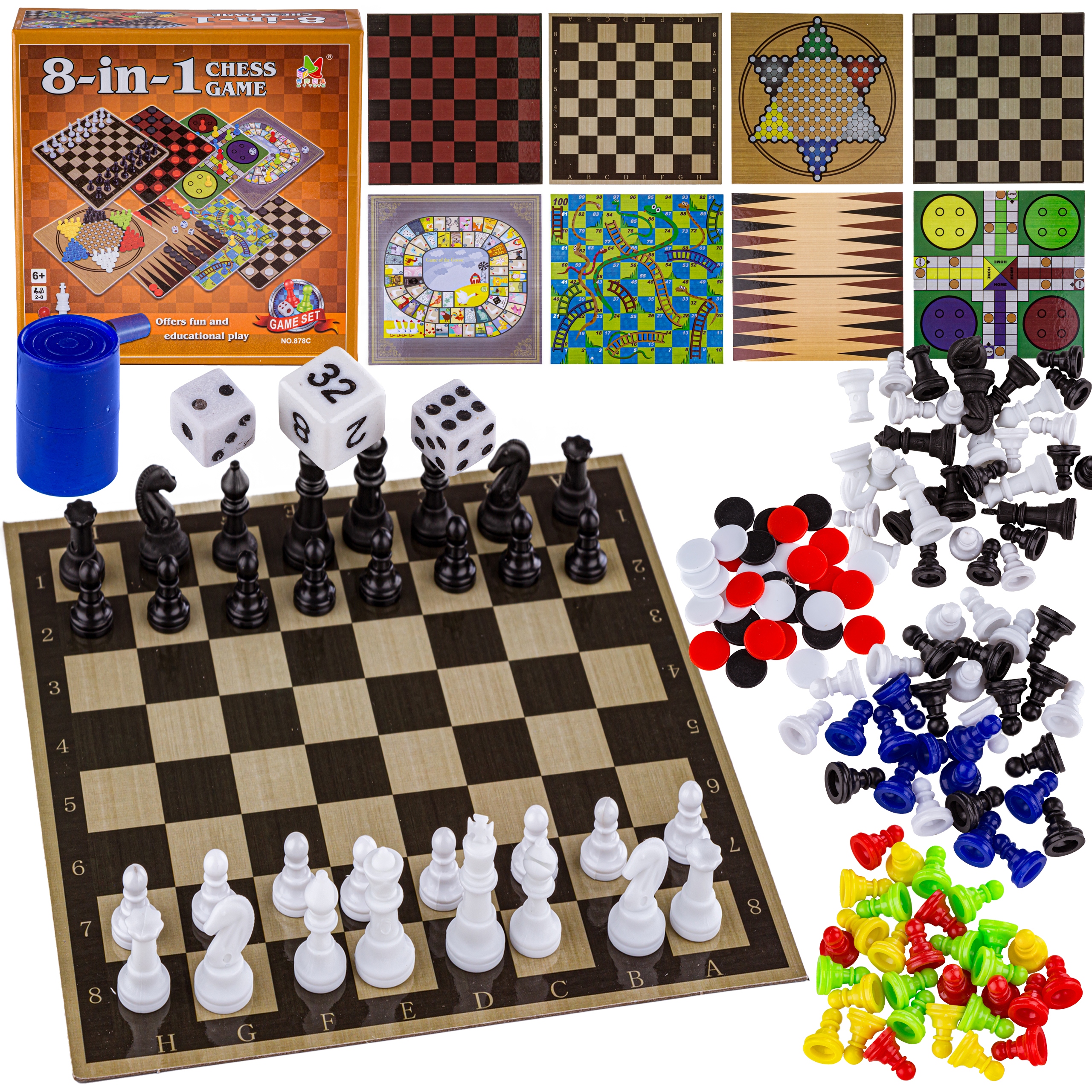 GRA PLANSZOWA 8w1 Szachy Warcaby Chińczyk Kości Zestaw Gier Planszowych