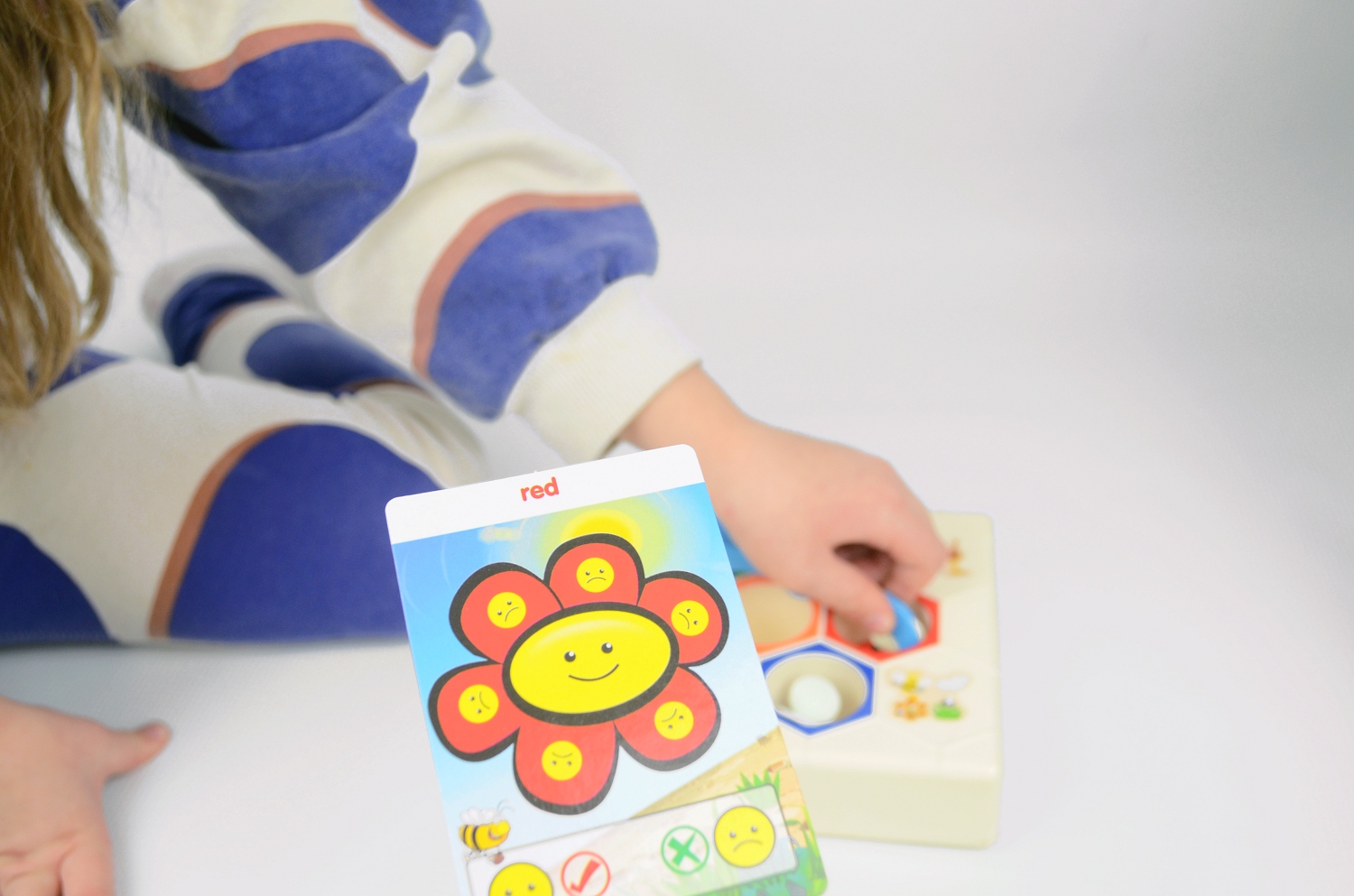 - вытаскивать пчел из цветных ячеек сот и сопоставлять их по цвету с цветными аналогами в виде карточек,