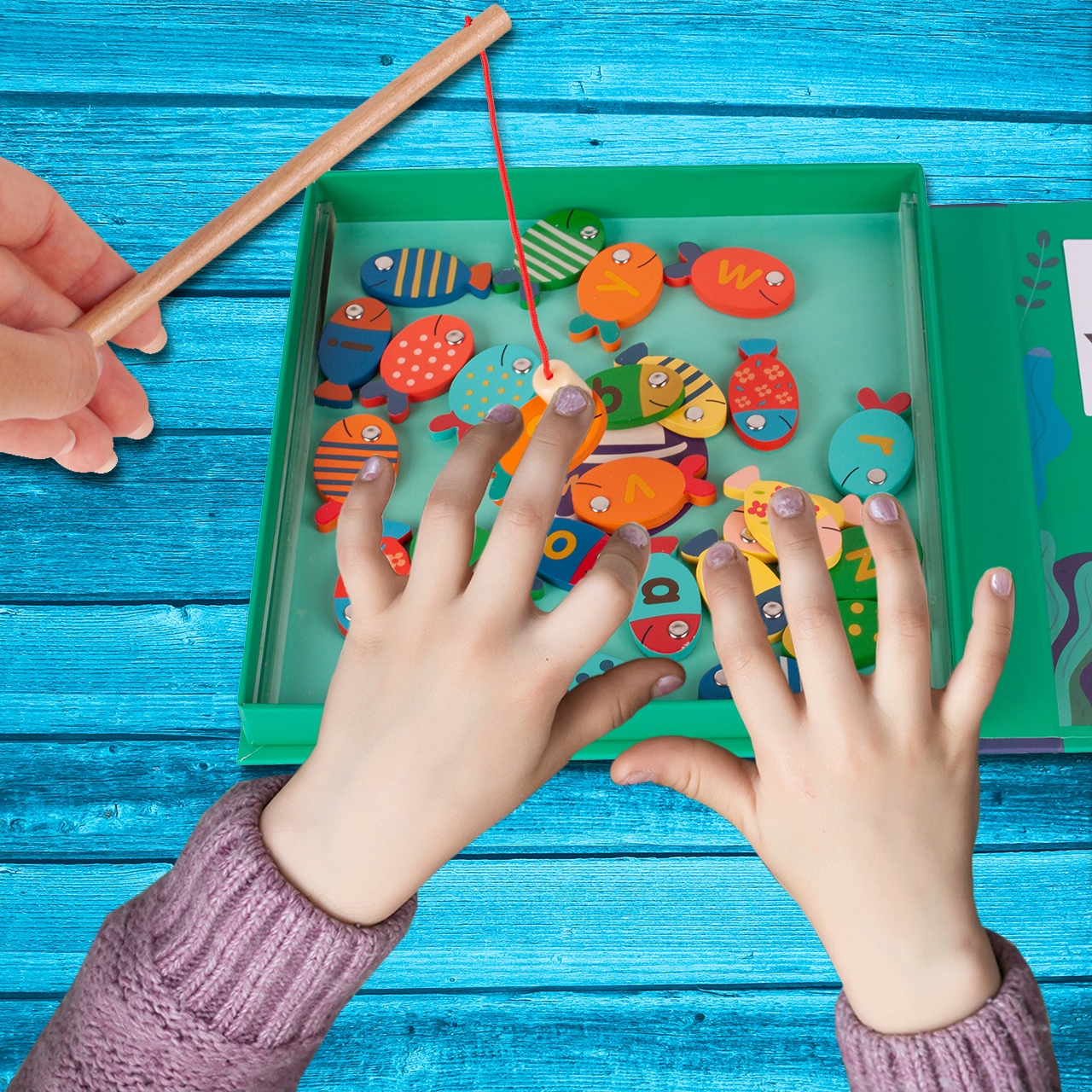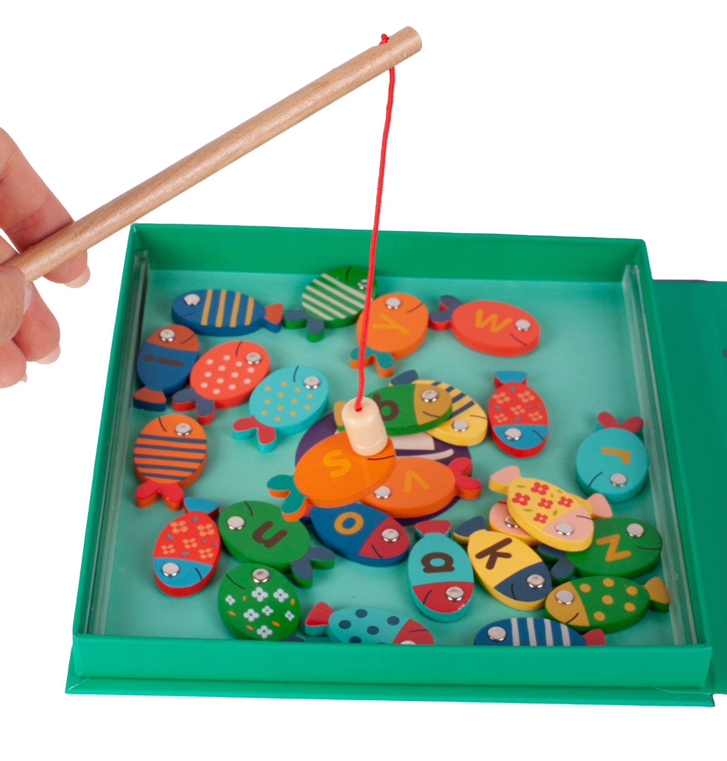 С нашим очаровательным набором вы почувствуете себя настоящим рыбаком! Попробуйте поймать всю рыбу деревянной удочкой.