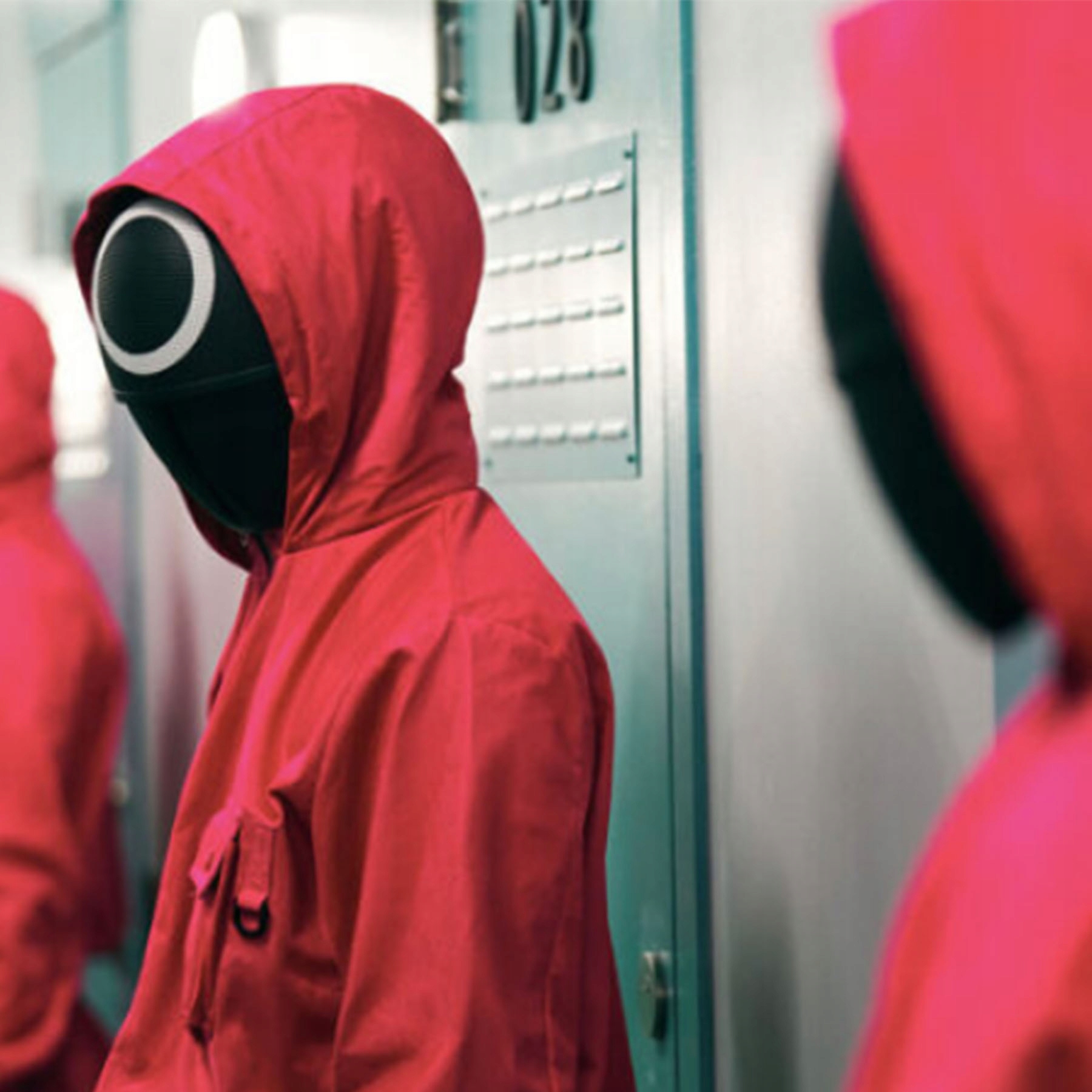 ◾ Дизайн, вдохновленный сериалом - маска в стиле охранников из популярного корейского хита. Черный фон с характерным белым квадратным принтом, который привлекает внимание и добавляет подлинности.
