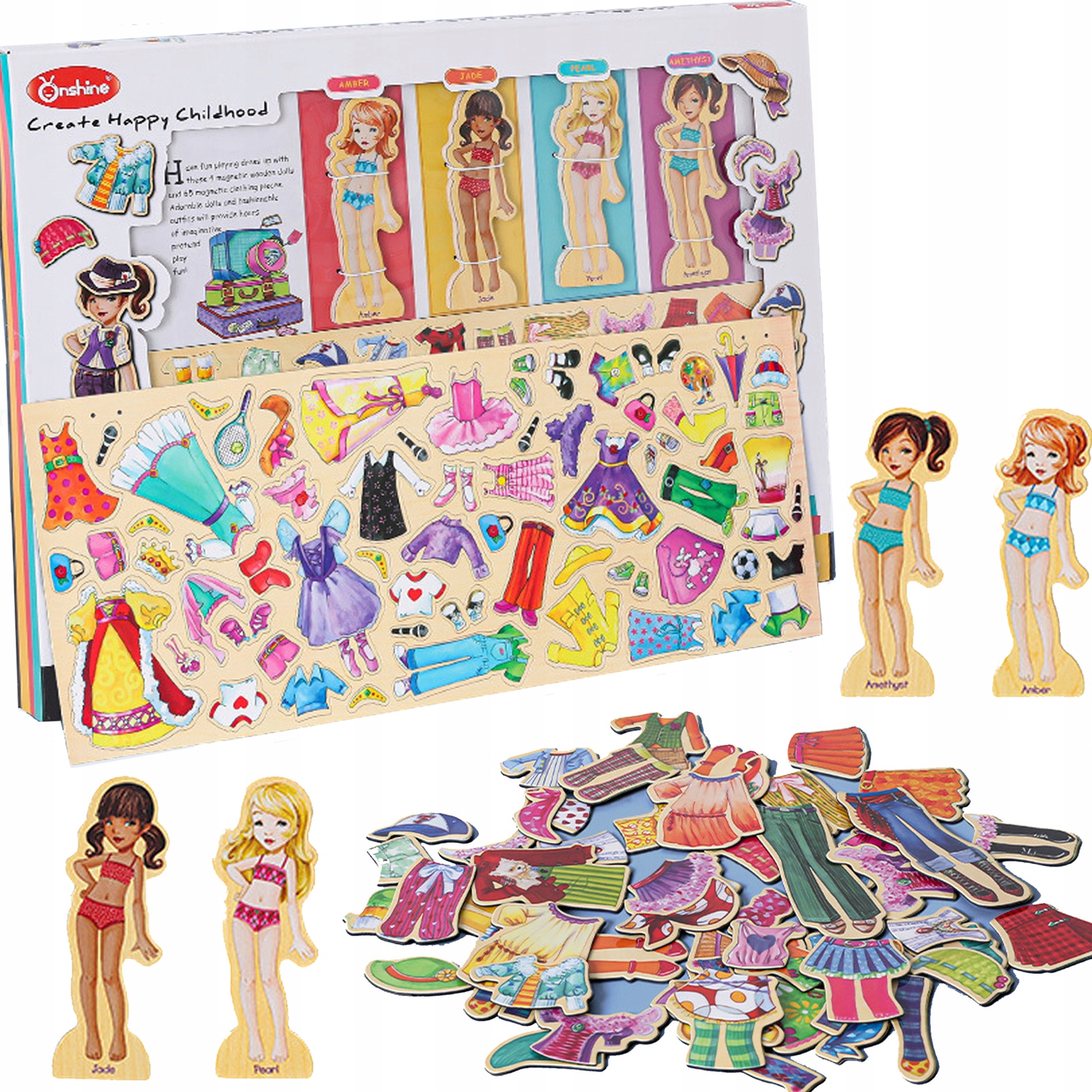 ❤ Деревянные заправки - это 4 модельные куклы и 65 магнитная одежда