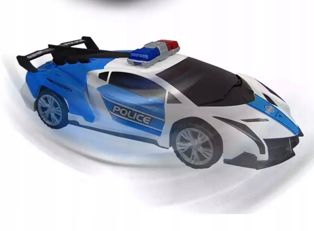 Полицейская машина с 3D-светом и звуком. Полицейские машины оснащены цветным 3D-светом, который мигает и меняет цвет, мчится по комнатам с автоматическим открытием и закрытием дверей.< /п>