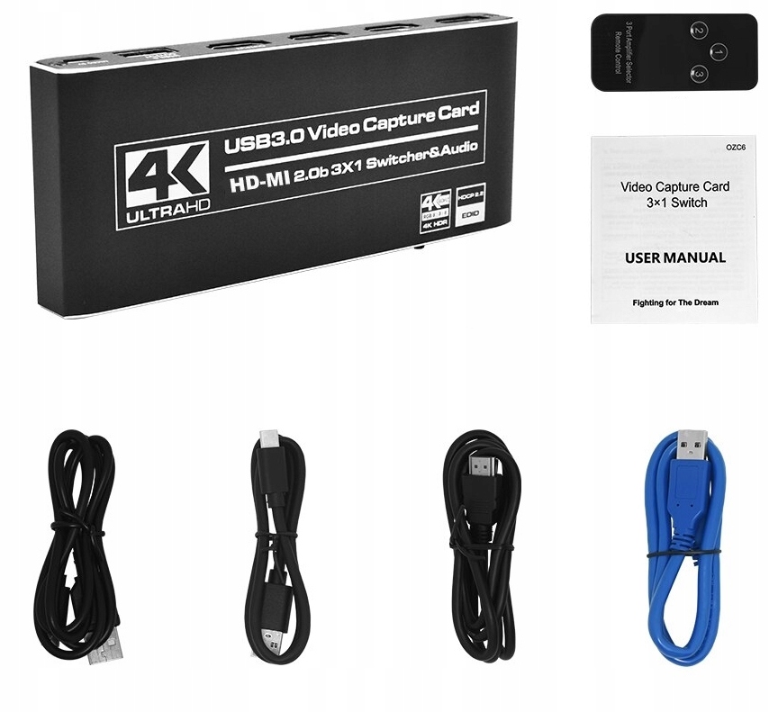 GRABBER HDMI 2.0 USB 3.0 ПЕРЕМИКАЧ 3x1 ЗАХОПЛЕННЯ ВІДЕО