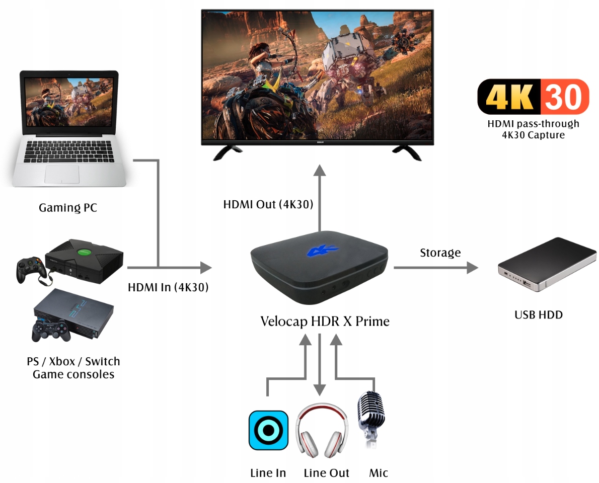 Velocap HDR X Prime 2.2 New — фантастическое устройство, позволяющее захватывать любой сигнал HDMI. Грабер будет отлично работать с любым источником - от компьютера, через медиаплееры, приставки и ТВ-тюнеры, а также игровые консоли - Playstation 3, Playstation 4, Xbox 360 и Xbox One.
