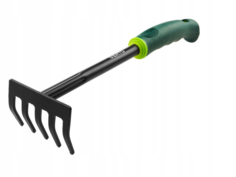 Грабли VERTO длиной 340 мм. Очень полезен при работе в саду. Лезвие изготовлено из прочной стали, устойчивой к деформации. Прорезиненная ручка эргономичной формы хорошо лежит в руке и не скользит, что повышает комфорт работы.