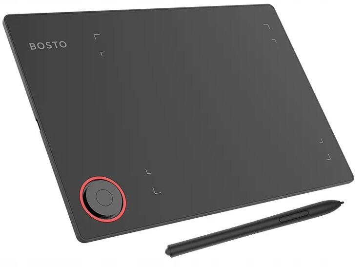 В комплект входит стилус Bosto W03, не требующий батареек и зарядки. Благодаря разрешению пера 0,005 мм/точку (5080 LPI), 8192 уровням давления и точности 0,25 мм вы сможете создавать еще более детальные изображения. Экран реагирует на стилус под углом до 60°. Благодаря этому ручку можно настроить под свои привычки для более комфортной работы.