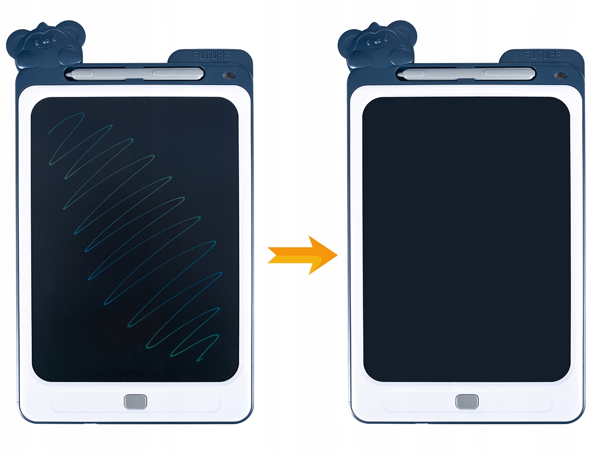 Экран планшета с диагональю 12 дюймов воспроизводит изображение благодаря силе давления! Кроме того, на передней панели Планшета есть кнопка, которая позволит вам легко удалить картинки и начать играть заново!