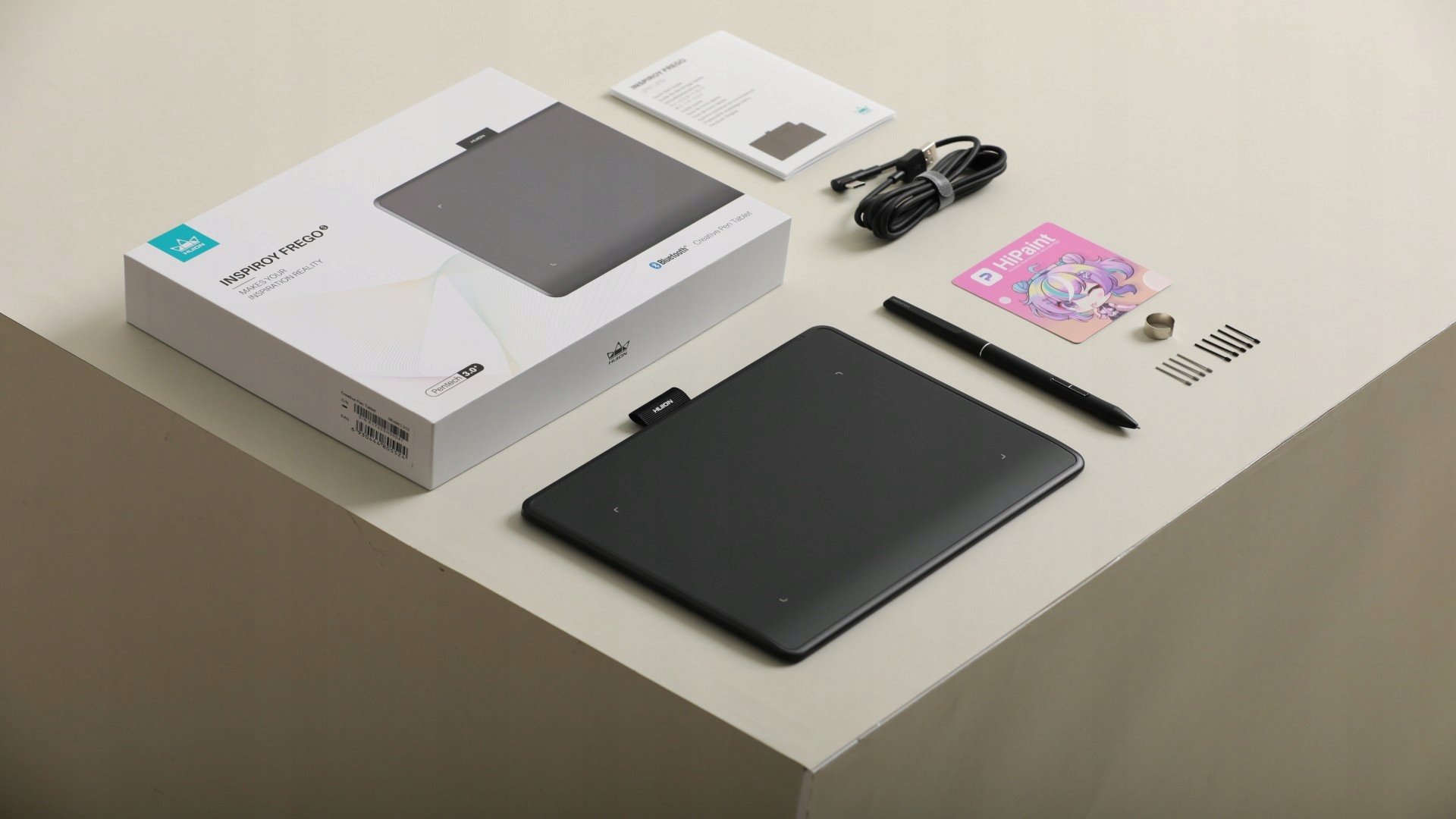 Графические таблетки Inspiroy Frego имеют встроенный модуль Bluetooth 5.0, который обеспечивает беспроводное соединение с устройствами. Благодаря этому решению вы можете избавиться от ненужных проводов, что позволяет вам работать комфортно. Планшет имеет встроенную функцию, чтобы предотвратить разгрузку батареи - он автоматически помещает устройство для размещения устройства на четверть неактивности. Был также классическое проводное соединение с использованием USB -типа C.