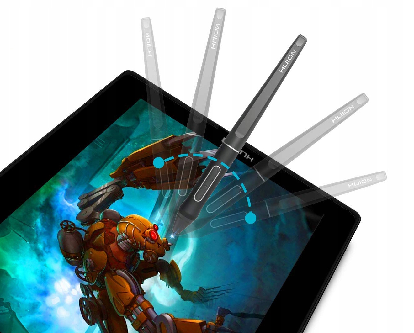 Последнее поколение пассивного пера Huion обеспечивает обнаружение 8192 уровня давления и угла наклона пера по отношению к поверхности экрана! И все это благодаря входному разрешению 5080LPI и частоте обновления положения пера 266 PPS, что обеспечивает точную и плавную работу.