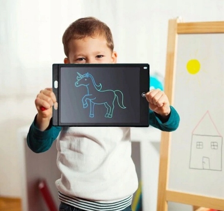 Доска предназначена для рисования, заметок и зарисовок. 8,5-дюймовый экран быстро реагирует на движения стилуса. Электронный планшет для рисования пригодится в школе, на встрече, в путешествии и везде, где вам понадобится удобный блокнот или альбом для рисования. Можно использовать как список покупок на холодильнике. Благодаря небольшому весу и небольшим размерам он легко поместится в рюкзак или сумку. По размерам устройство похоже на блокнот формата А5.