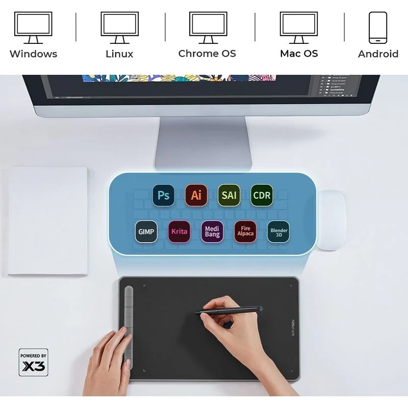 Перьевые планшеты работают с большинством основных графических программ, включая Photoshop, Illustrator, SAI, GIMP, Krita, MediBang Paint, FireAlpaca, Blender и другими. Широкая совместимость этих графических планшетов расширяет ваши творческие горизонты.