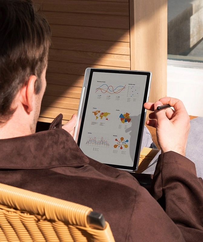 Благодаря специальным технологиям, дисплей напоминает бумажную структуру b>, что обеспечивает естественный и приятный опыт во время чтения и письма. Покрытие Удаляет отражения и световые отражения делает каждое слово, и каждая строка рисунка выглядит напоминающей к реальной бумаге. Это решение значительно снижает усталость от зрения, увеличивает комфорт использования и способствует многочасовым часам обучения или творческих рабочих сессий - как в комнате, так и на улице.