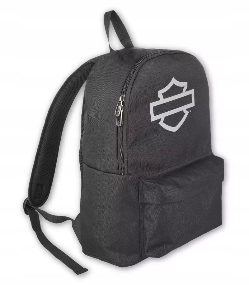 Harley-Davidson® Bar & Shield Graphic Backpack Black, 90815-Blkgray. Сделано из прочной, высокой плотности полиэстера. Главная камера закреплена передним карманом для аксессуаров. Удобный, мягкий и регулируемый рюкзак и носящая ручка наверху. Размеры: 17 "x 12,5" x 5 ".
