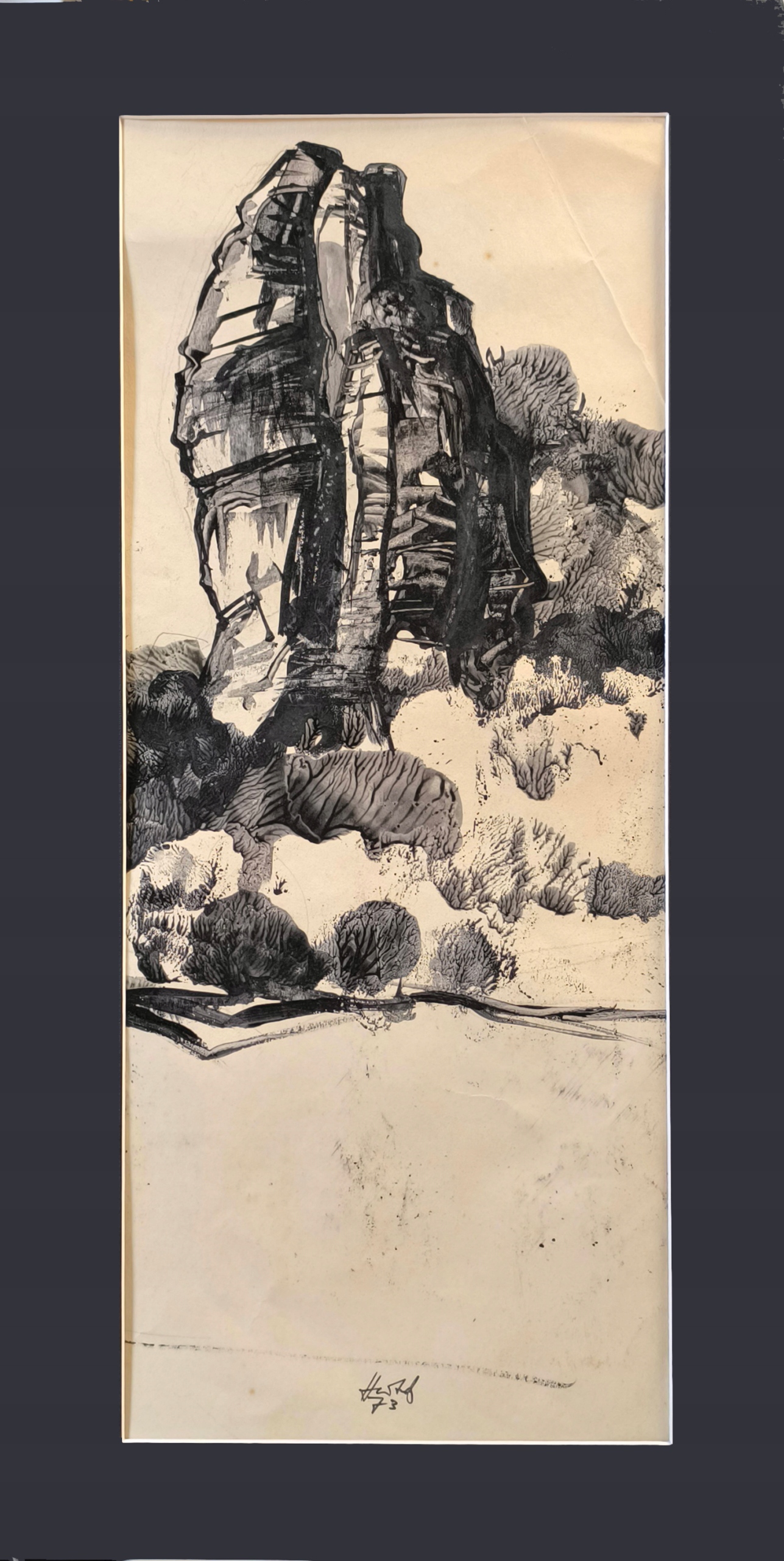 ГРАФІКА - ЧОРНИЛО РОБОТА ОБРАМЛЕНА В PASSE-PARTOUT