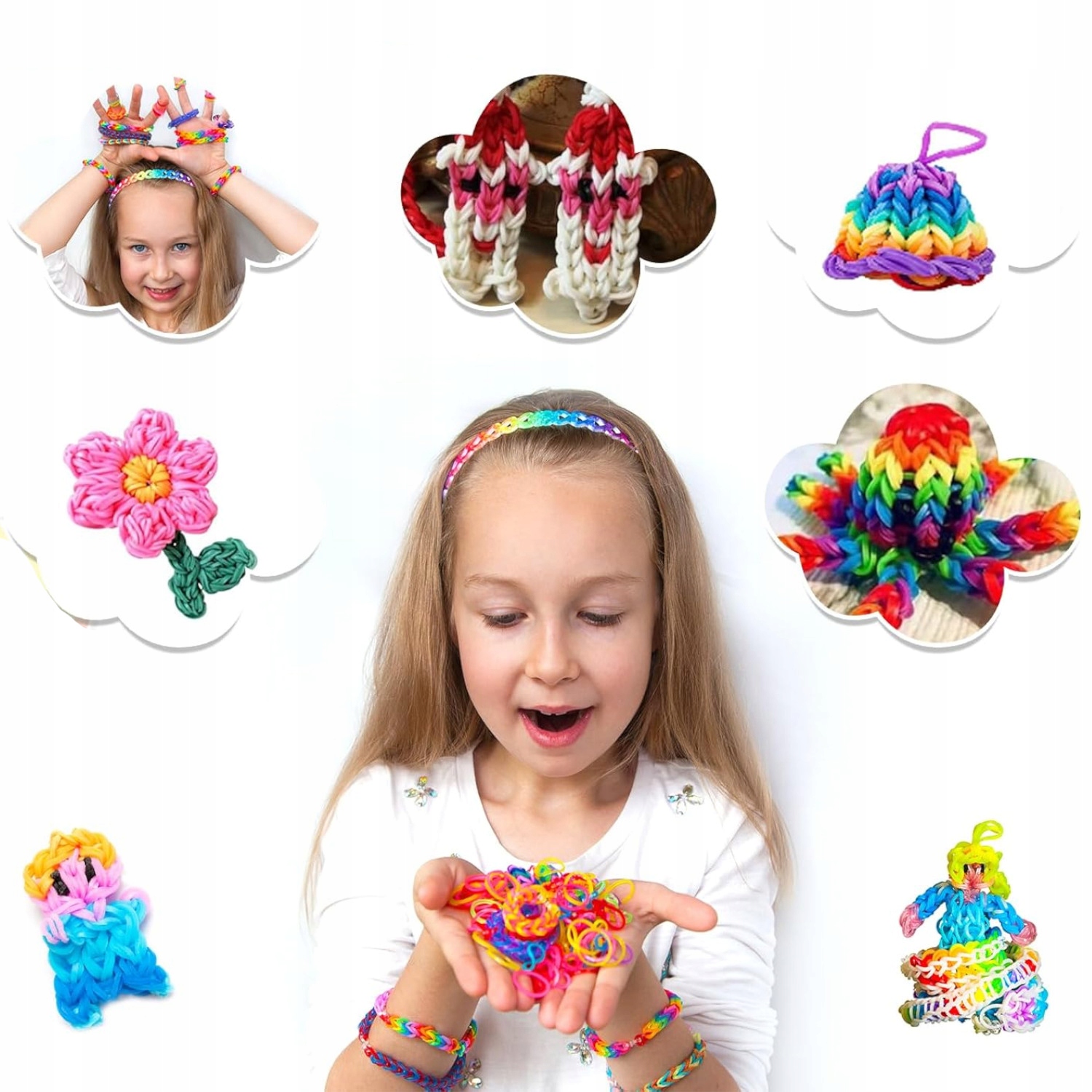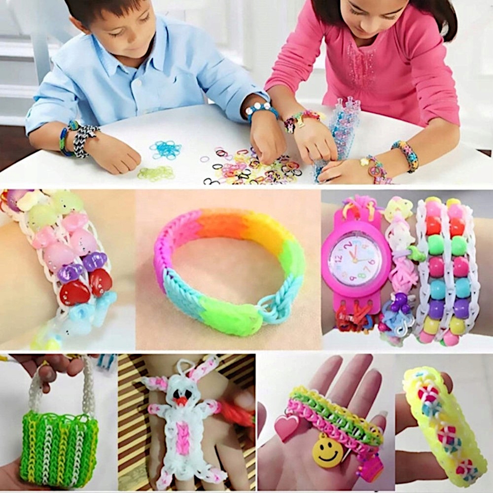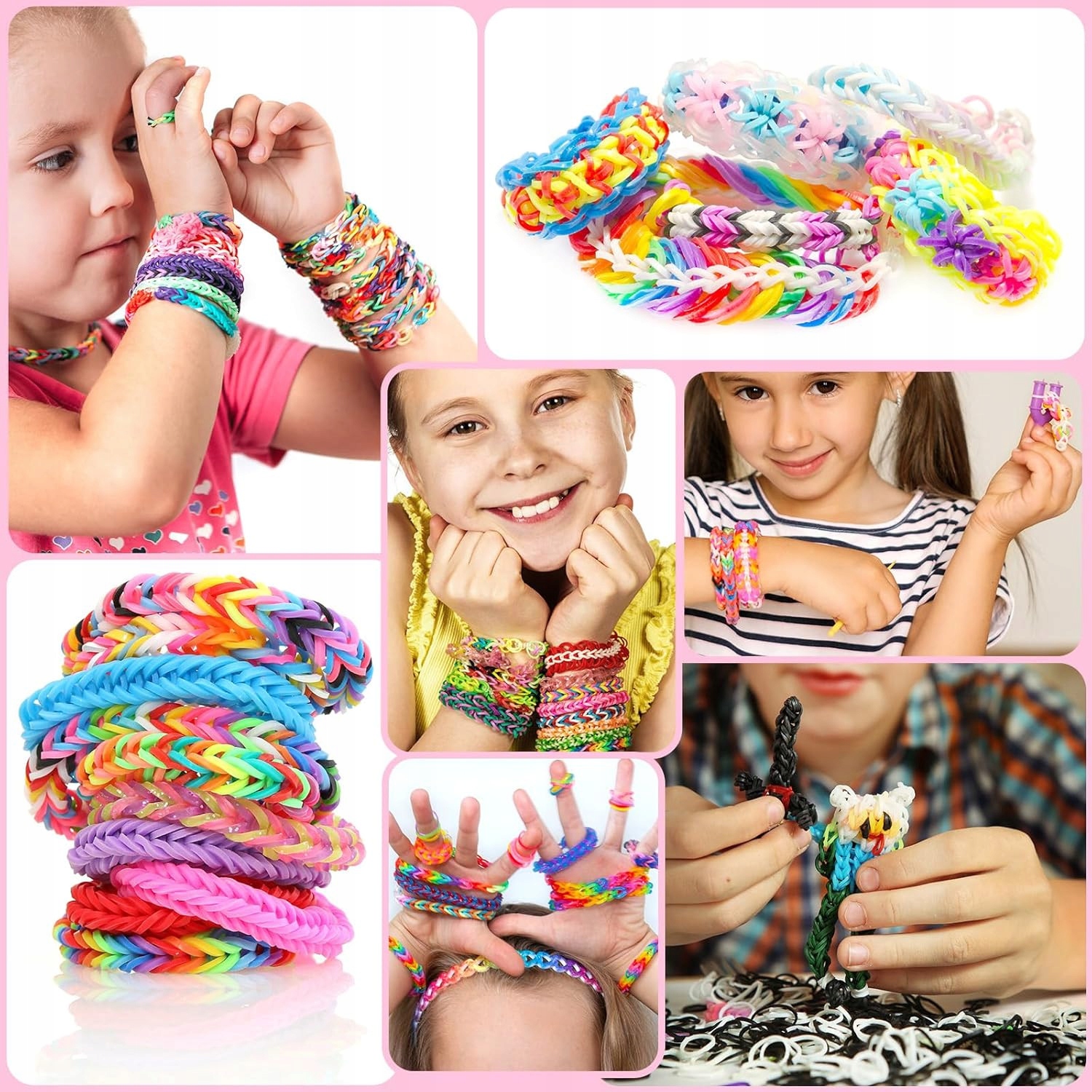 Creative Set DIY Bands Включение создания вашего собственного красочного браслета, парикмахерских. Кроме того, наборы «создавать» могут быть украшены резиновыми подвесками, полосами или в сочетании с разноцветными бусинками или буквами, создавая, например, название ребенка в браслете. Огромное количество бусин позволит вам создавать множество различных браслетов для различных случаев и соответствовать вашей дочери.