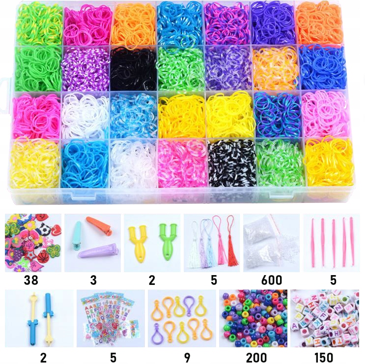 Erasers для изготовления ювелирных браслетов - Mega Set h1> ⭐ 8600 Элементы ⭐ 27 цветов ⭐ h1> ⭐ буквы ⭐ Повестки ⭐ Бусины ⭐ наклеек ⭐ h2>