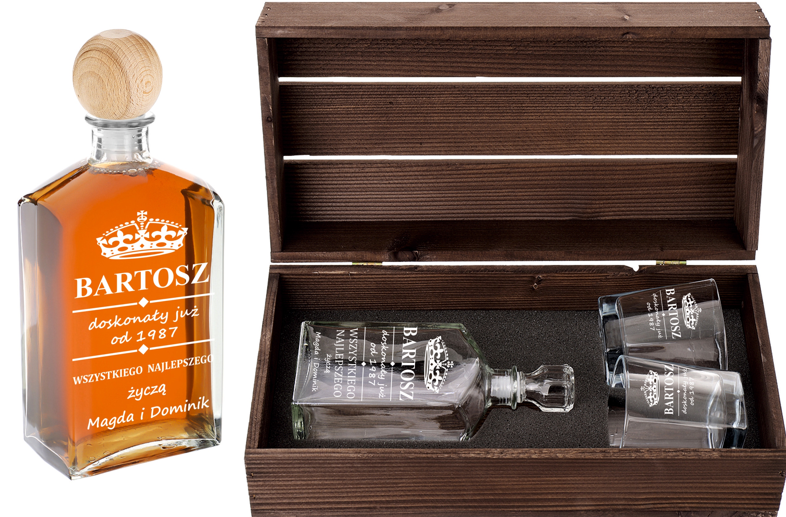 Предмет аукциона — графин и 2 бокала для виски с именной гравировкой, выполненные из толстого стекла!