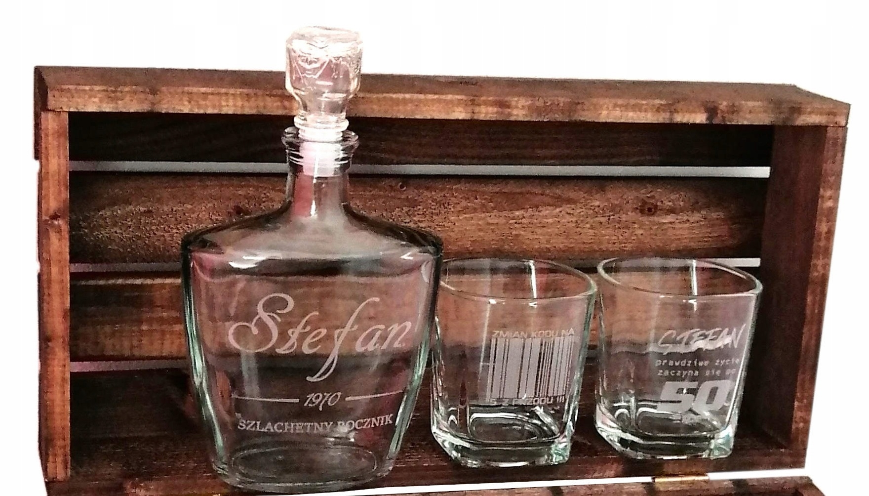 Предмет аукциона — графин и 2 стакана для виски с именной гравировкой, выполненные из толстого стекла!