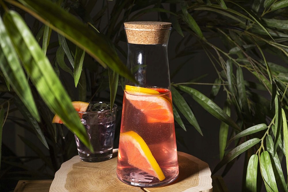 - Можно подавать воду, соки, напитки или столовое вино в графине