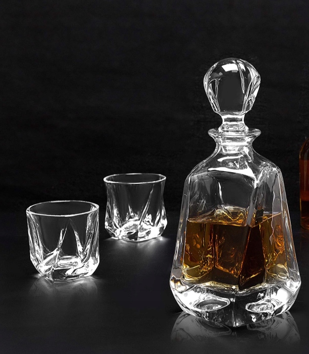 Роскошный набор из 5 предметов - графин 650 мл, 4 стакана по 210 мл. Идеально подходит для виски, коньяка, текилы и коктейлей. Идеально подходит для подарка