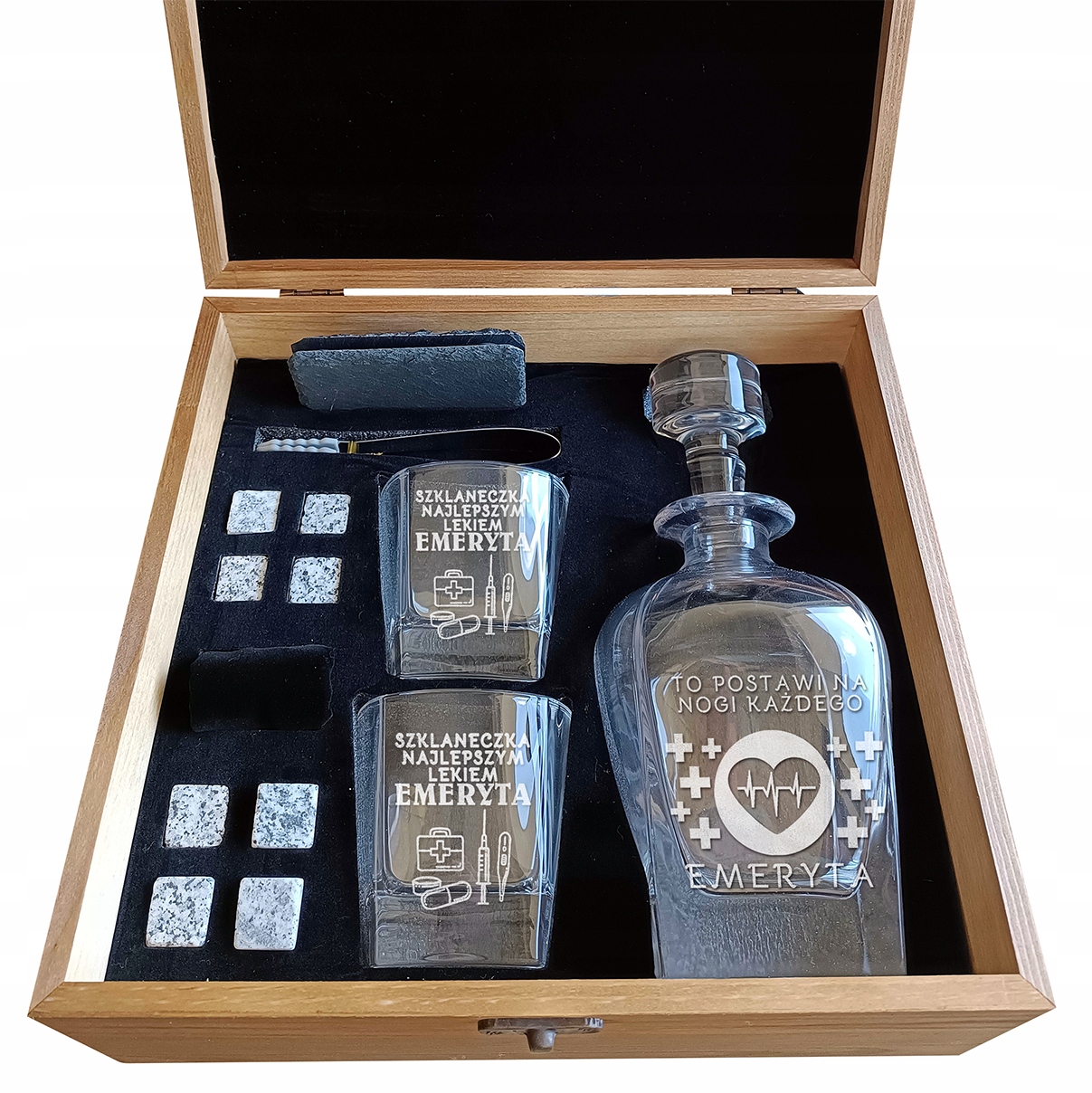 ✨ НАБОР С ГРАФИНОМ 0,7 Л НА ПЕНСИЮ, ИМЕННО ДЕНЬ РОЖДЕНИЯ, 2 БОКАЛА, 8 КУБИКОВ, СУМКА, 2 КАМЕННЫЕ МАЙКИ, ЩИПЦЫ ДЛЯ БРЕНДИ И ВИски ИДЕАЛЬНО В ПОДАРОК✨